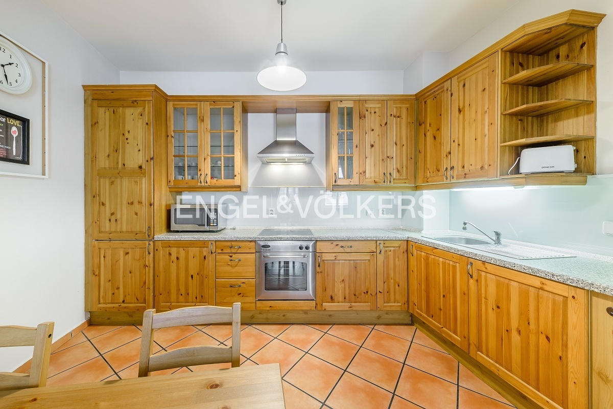 Byt nabízí praktickou dispozici zahrnující obývací pokoj který je napojený na ložnici kde se nachází šatna, plně vybavenou kuchyni, prostornou ložnici, pracovnu a koupelnu s vanou a toaletou.