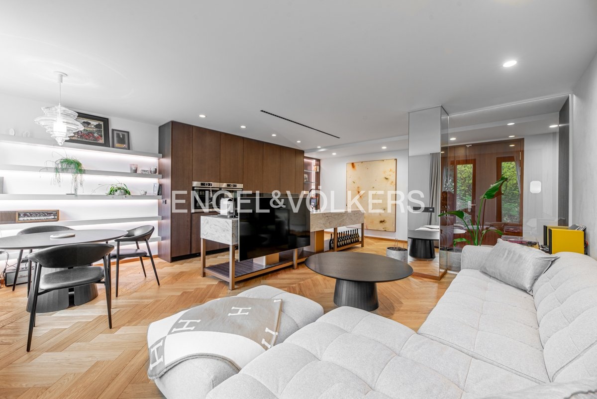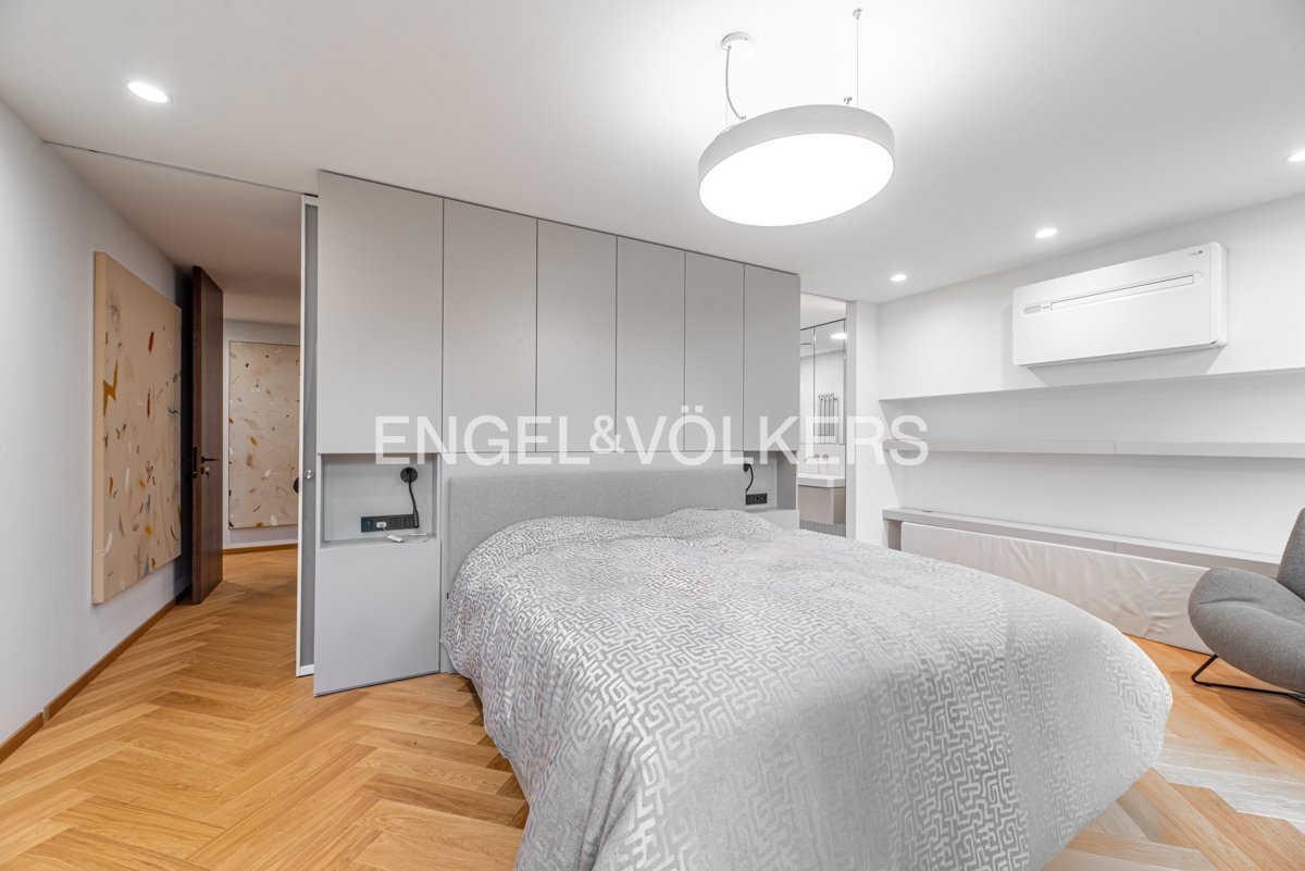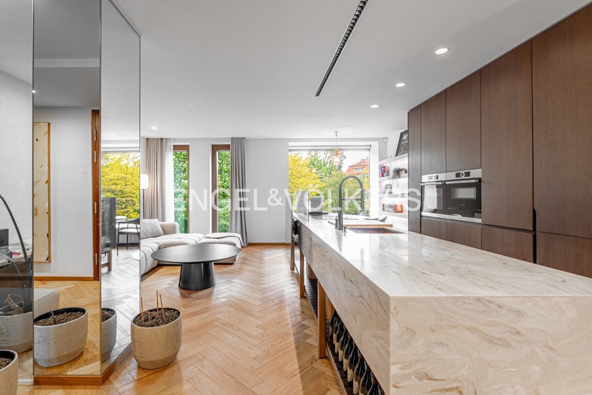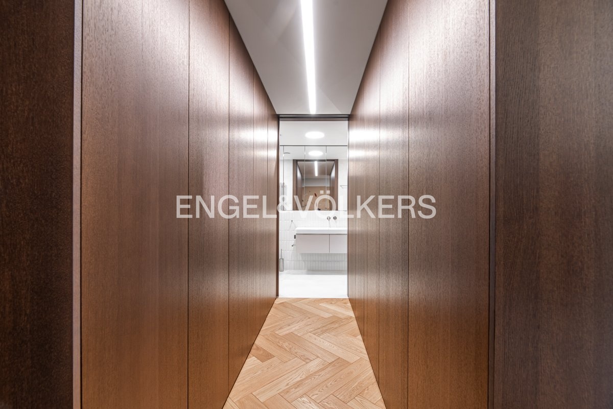 Byt je vybaven na míru zhotoveným nábytkem, prémiovými masivními dřevěnými parketami a klimatizací pro maximální pohodlí. Díky preciznímu zpracování a použití vysoce kvalitních materiálů nabízí tento byt úroveň bydlení, která je zcela výjimečná.