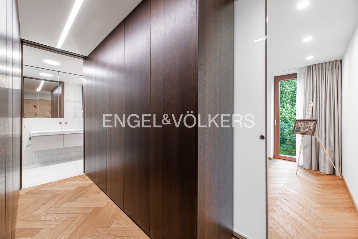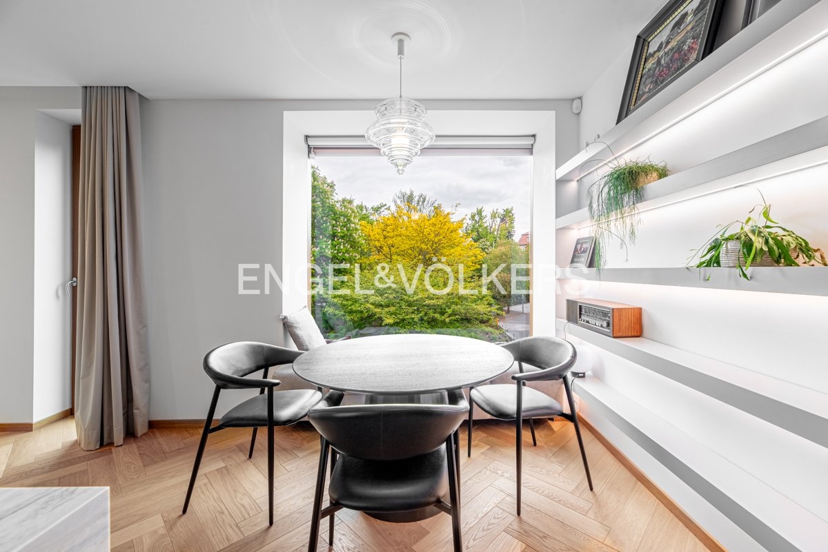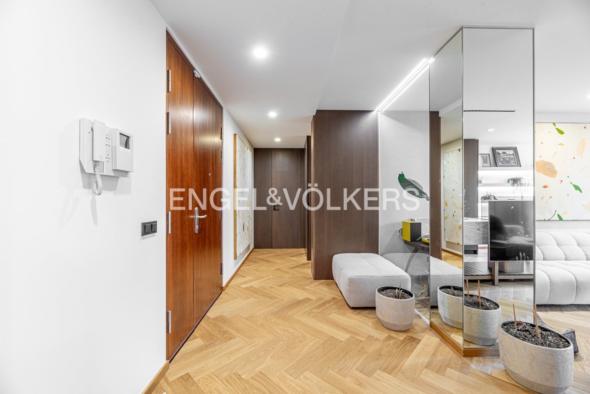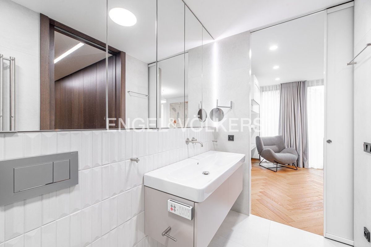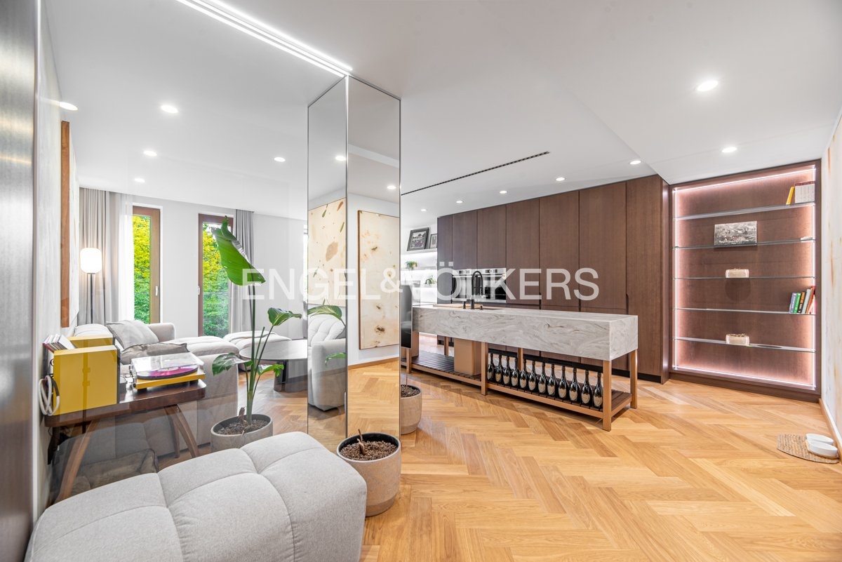 Byt je vybaven na míru zhotoveným nábytkem, prémiovými masivními dřevěnými parketami a klimatizací pro maximální pohodlí. Díky preciznímu zpracování a použití vysoce kvalitních materiálů nabízí tento byt úroveň bydlení, která je zcela výjimečná.