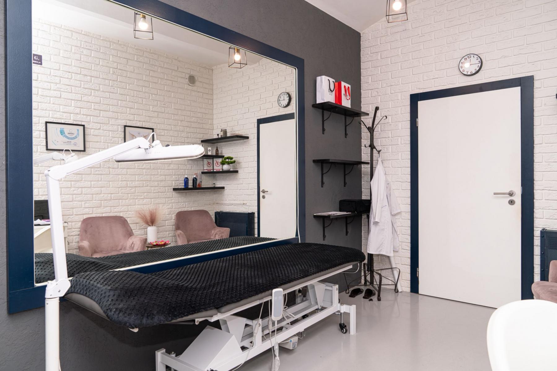 Interiér je moderní a profesionálně zařízený, což vytváří příjemnou atmosféru pro klienty.