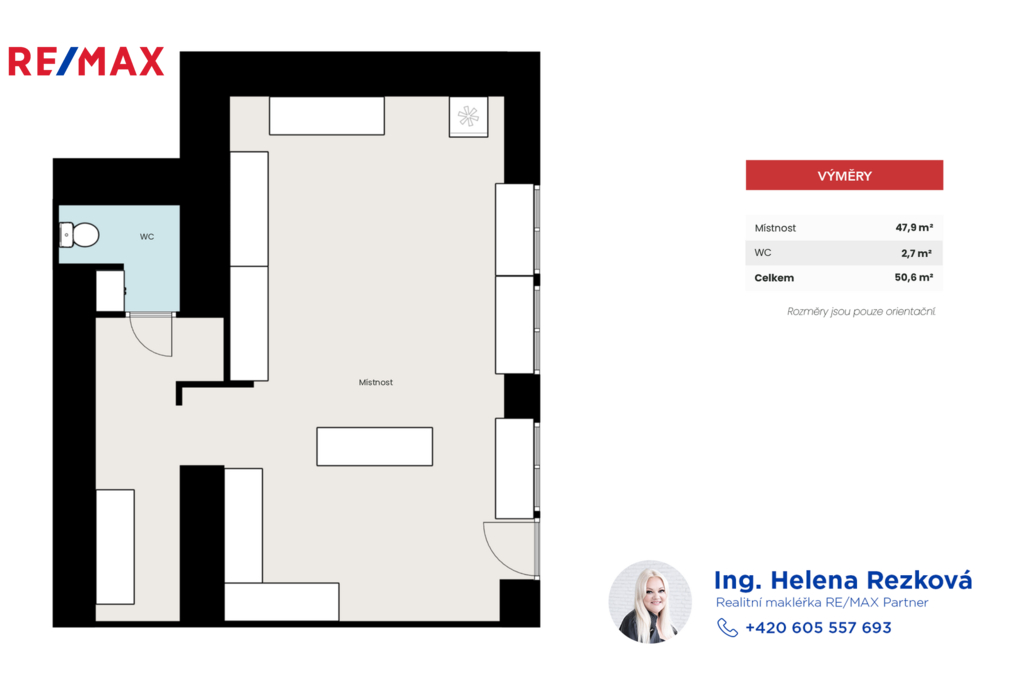 20 000 Kč (za měsíc)Pronájem - obchodní prostor, 49 m²
