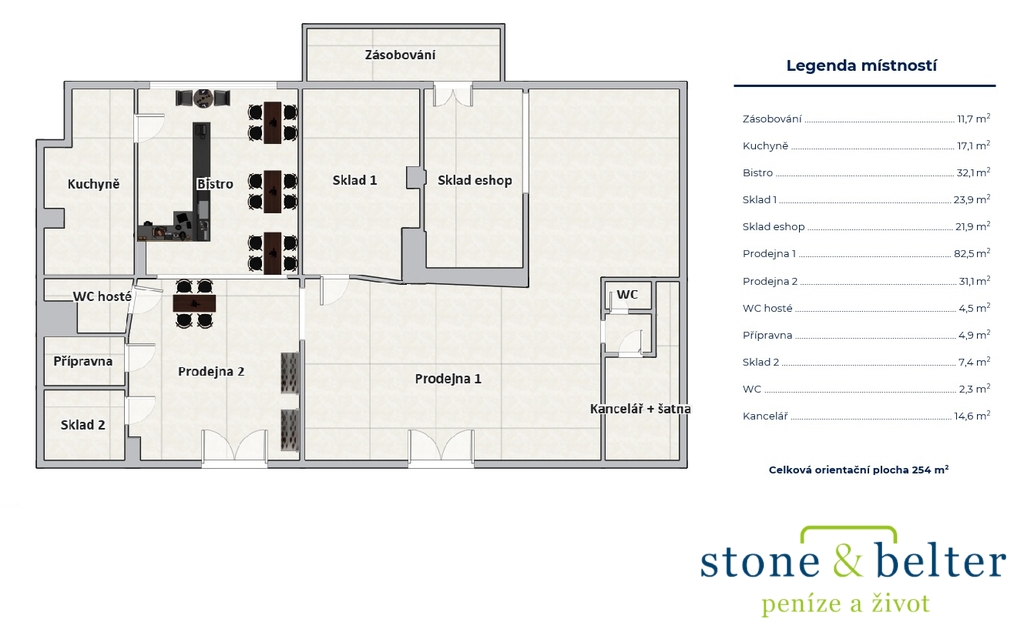 • součástí kupní ceny jsou též rozsáhlé zásoby zboží na prodejně a nákladné vybavení zejména bistra a kuchyně