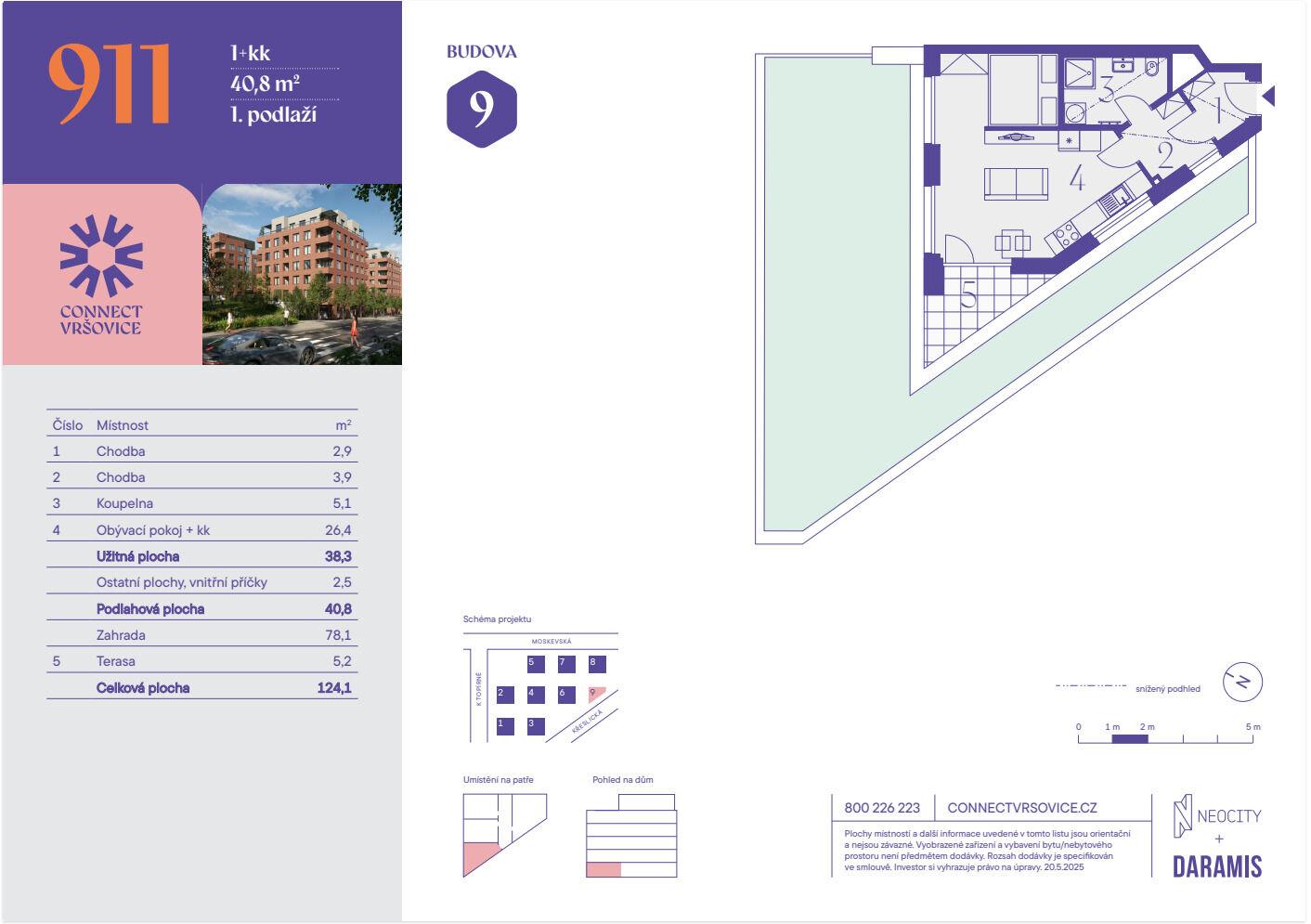 | Dispozice/podlahová plocha: | 1+kk/40 m² |