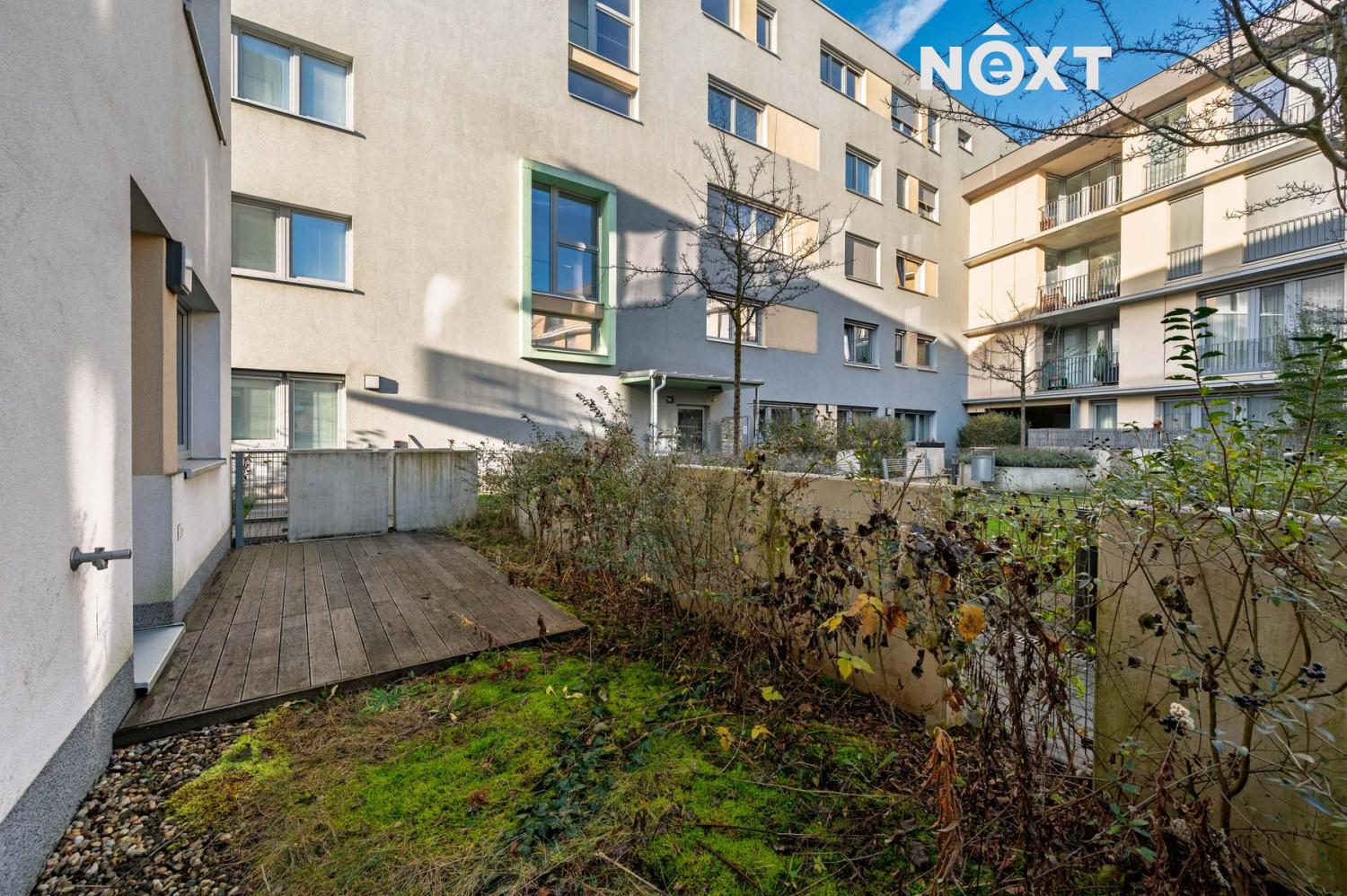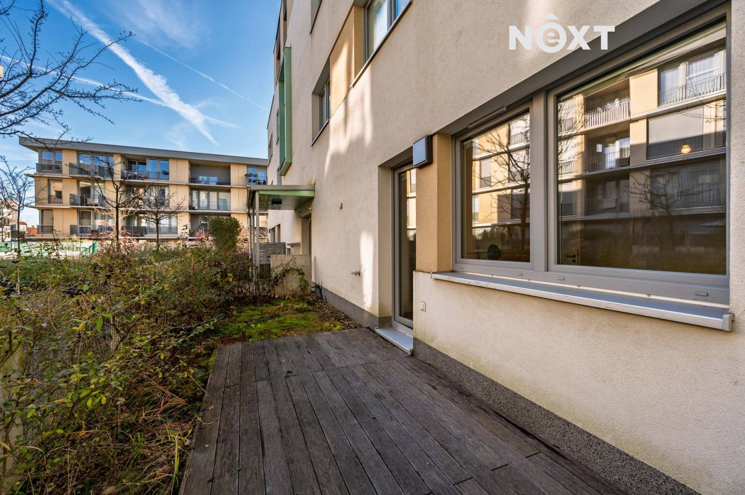 Z obývacího pokoje s kuchyňským koutem je vstup na balkon (7 m²) se zahrádkou (10,6 m²), ideální pro posezení nebo zeleň. Ložnice má přímý vstup na terasu (7 m²) a zahrádku ve vnitrobloku (15,6 m²), která poskytuje klid a soukromí. Další krytá terasa (9 m²) rozšiřuje obytný prostor a nabízí využití po většinu roku.