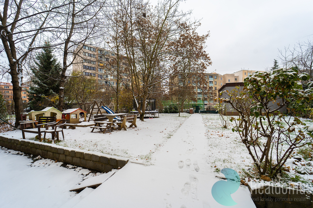 K bytu náleží velký zděný sklep (3,5 m²) – ideální pro sportovní vybavení nebo sezónní věci. Obyvatelé domu mohou využívat také soukromou oplocenou zahradu o rozloze přes 400 m², vhodnou pro relaxaci, posezení nebo bezpečné hraní dětí.