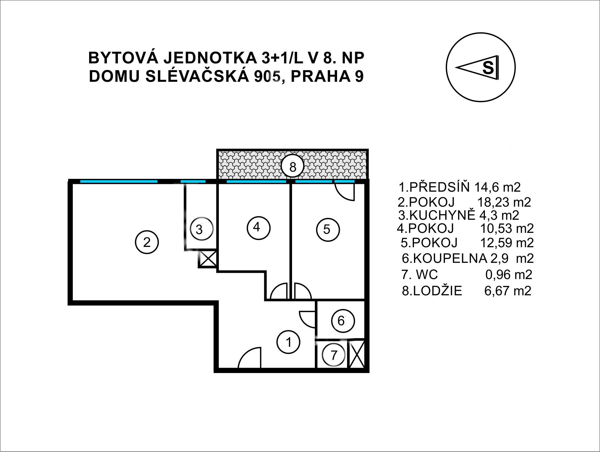 Prodej byt 3+1/L,66m2, Praha 9, Hloubětín