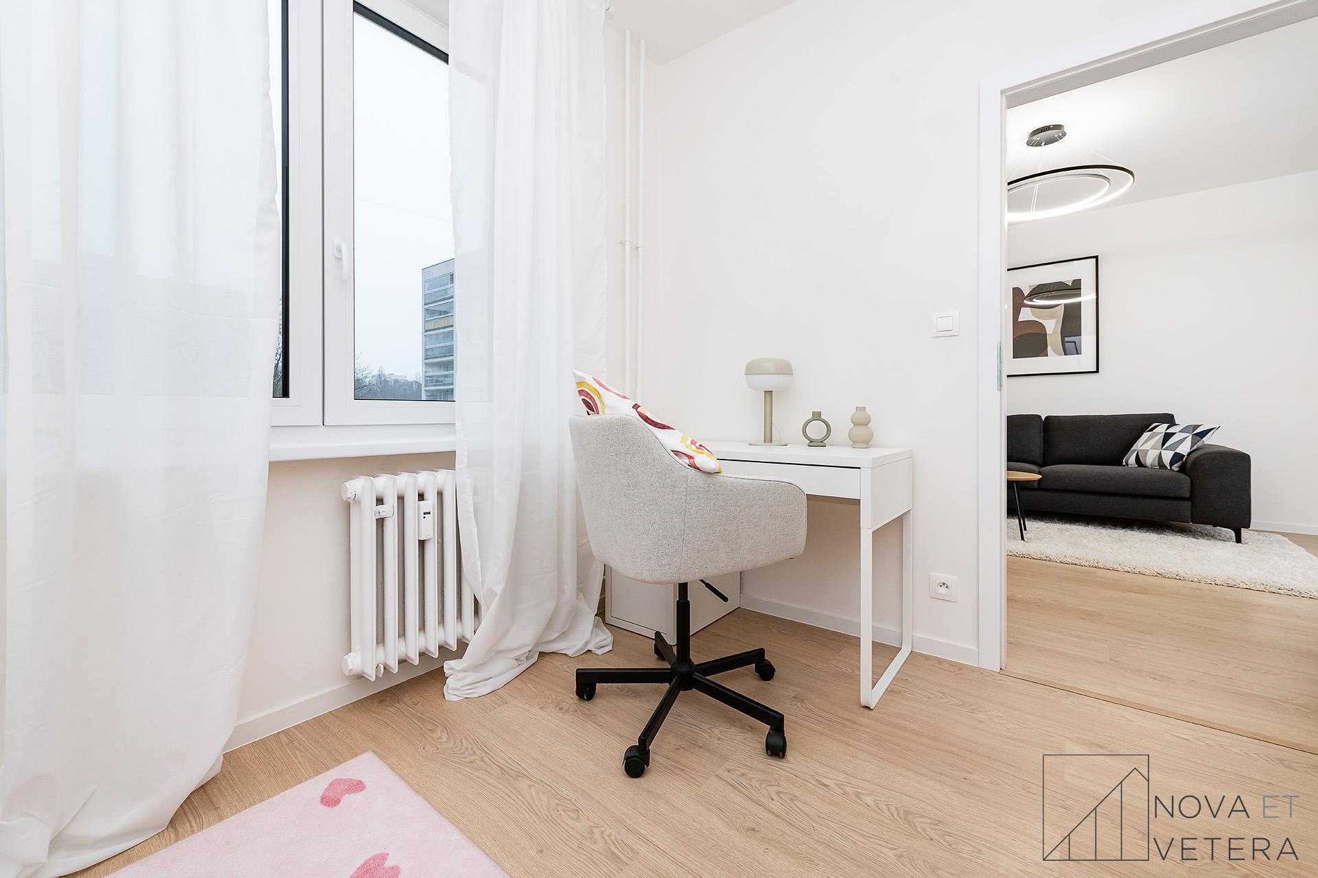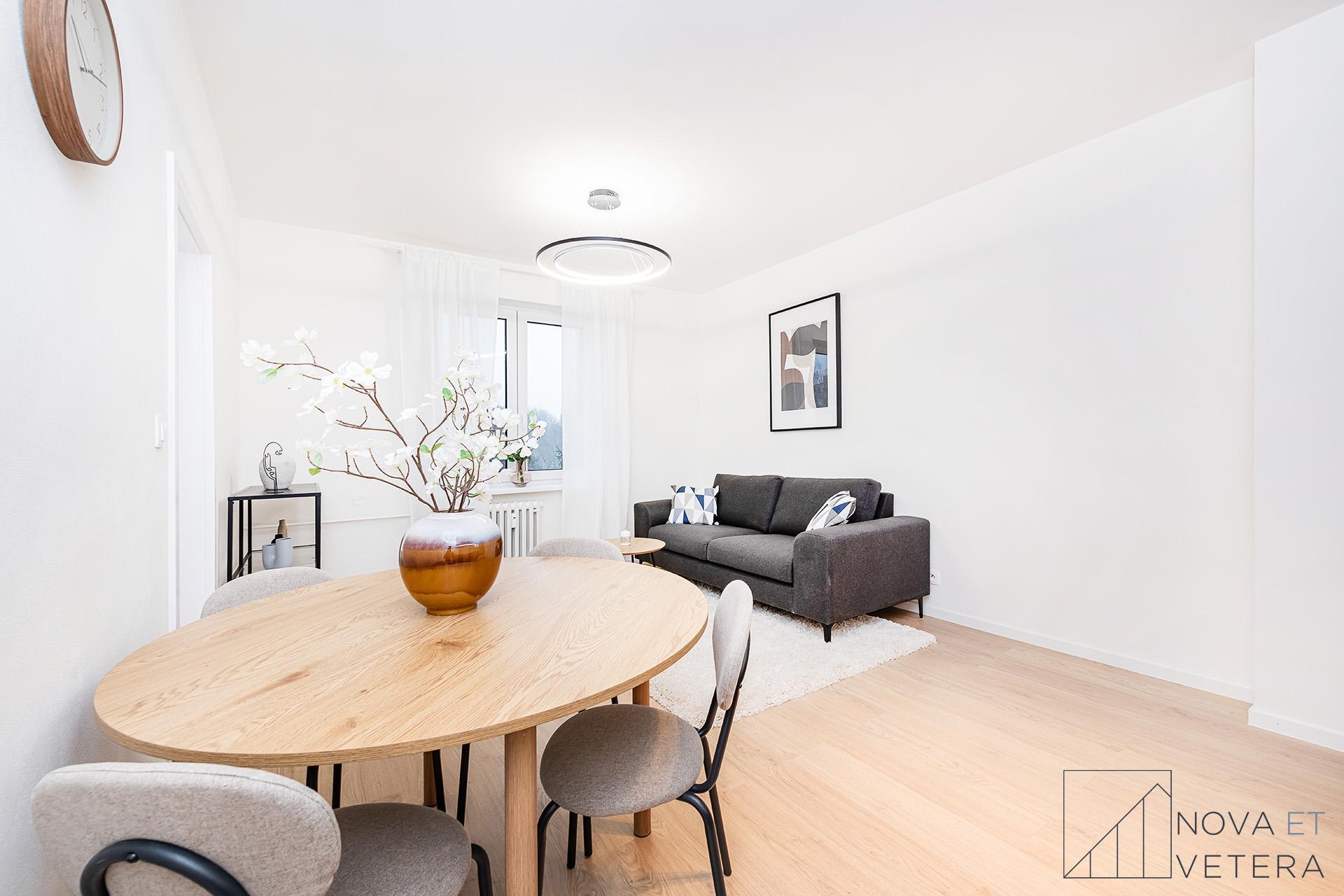 Byt právě prošel kompletní a kvalitní rekonstrukcí, která zahrnovala nové rozvody elektřiny, vody a odpadů, nová okna a podlahy, moderní obklady a dlažbu značky Marazzi, koupelnu se sprchovým koutem a sanitou Grohe a také novou kuchyňskou linku se spotřebiči Gorenje, na kterou je poskytována prodloužená záruka pět let.
