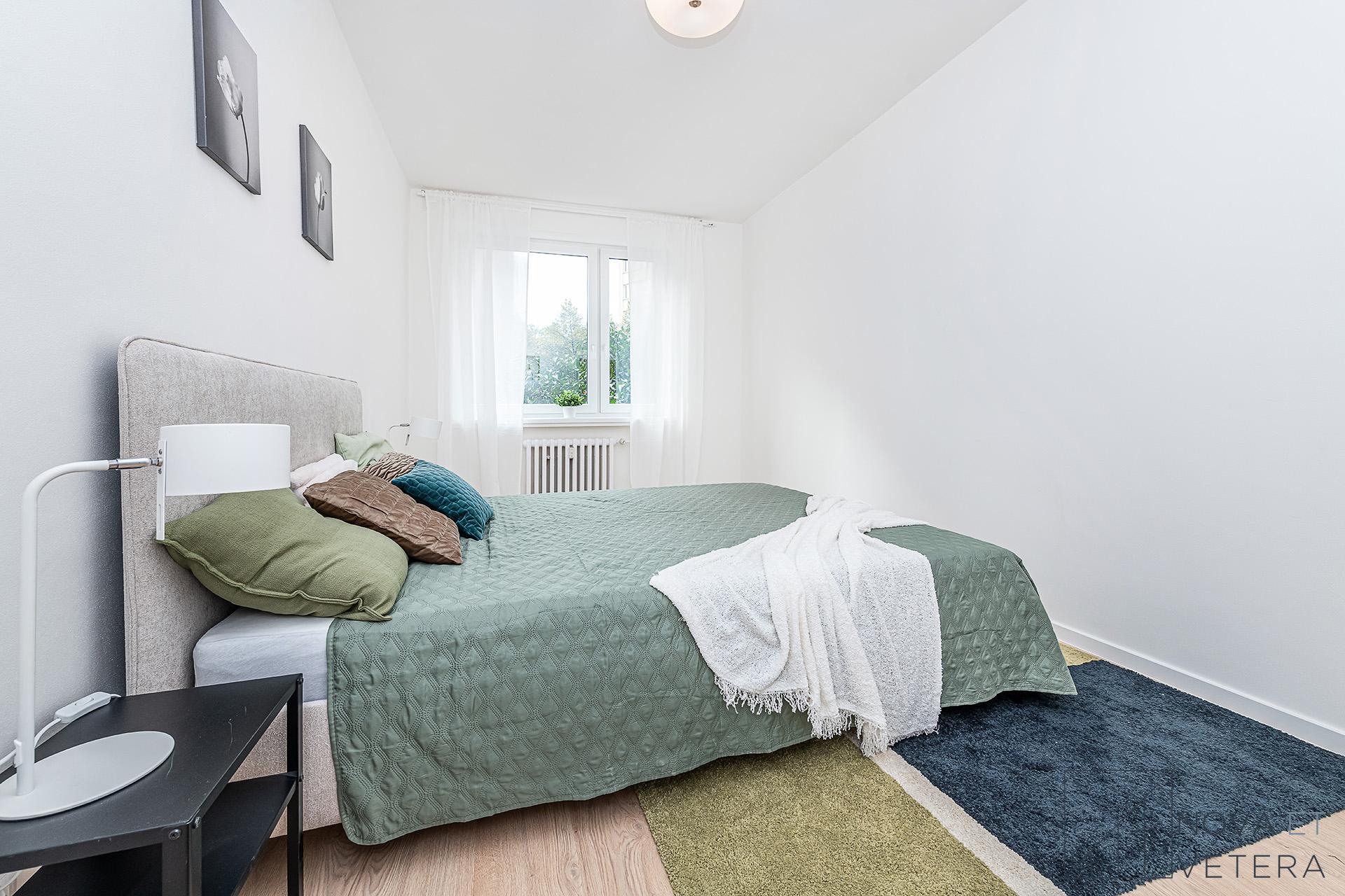 Dispozice bytu nabízí obývací pokoj s kuchyňským koutem, dva samostatné neprůchozí pokoje, které mohou sloužit jako ložnice, dětský pokoj nebo pracovna, koupelnu se sprchovým koutem a toaletou, technickou místnost a vstupní chodbu s dostatkem prostoru pro úložná řešení. Obývací pokoj s kuchyní směřuje na západ do klidné ulice, zatímco oba pokoje jsou orientovány na východ do zeleného otevřeného vnitrobloku, což zajišťuje příjemné světelné podmínky během dne i dostatek soukromí.