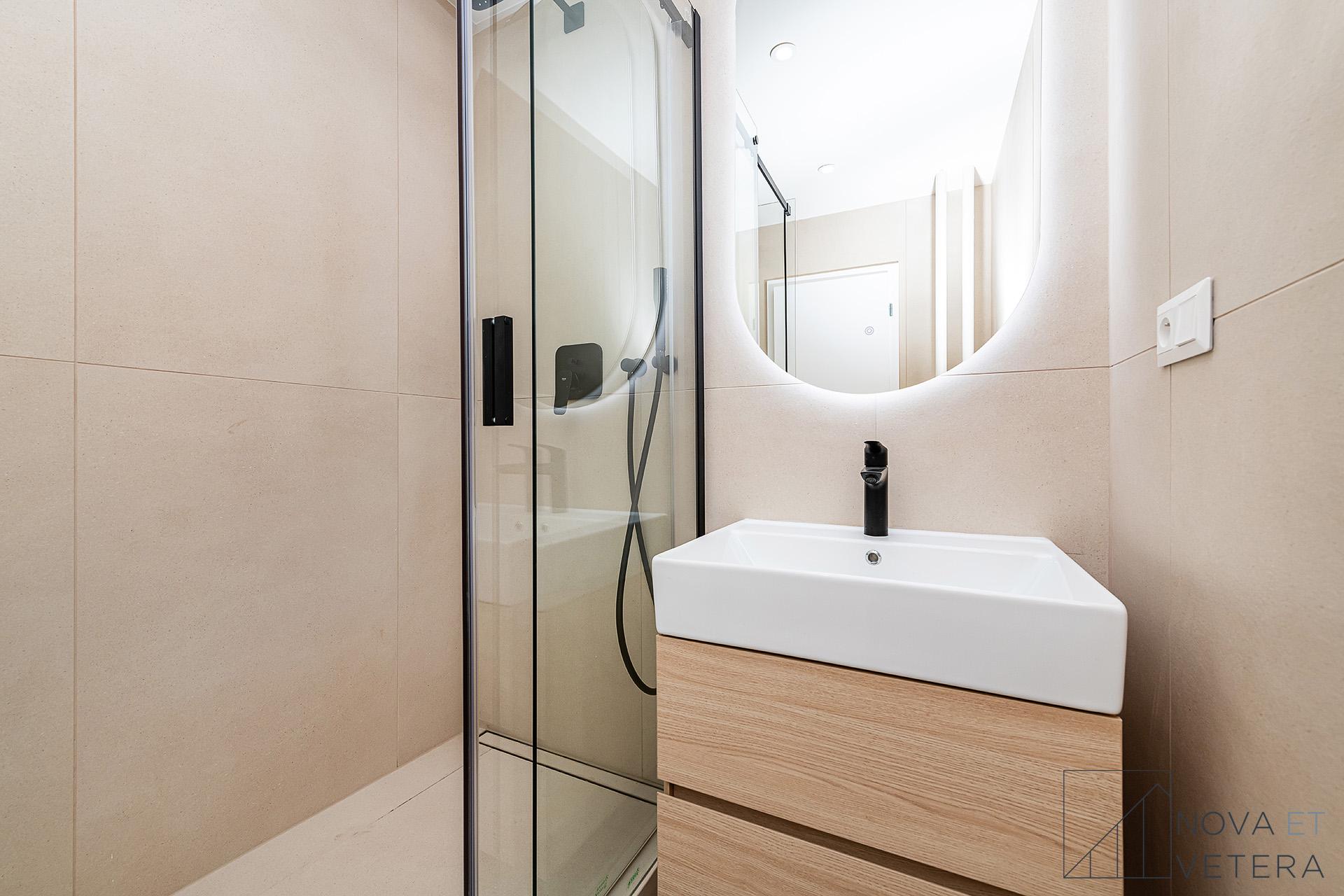Na bytě se momentálně dokončuje rekonstrukce a bude připraven k nastěhování od května 2026. Rekonstrukce zahrnuje nové dřevěné designové podlahy, kvalitní obklady a dlažbu Marazzi, nové rozvody elektřiny, vody a odpadů, sanitu značky GROHE a moderní kuchyňskou linku včetně vestavných spotřebičů značky Gorenje s prodlouženou pětiletou zárukou.