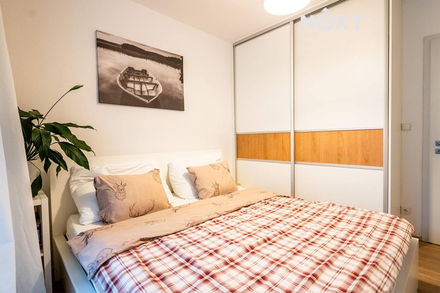 Ložnice jsou v bytě dvě a z obou máte přístup na terasu. V koupelně je vana a místo na pračku se sušičkou, toaleta je schovaná za rohem.