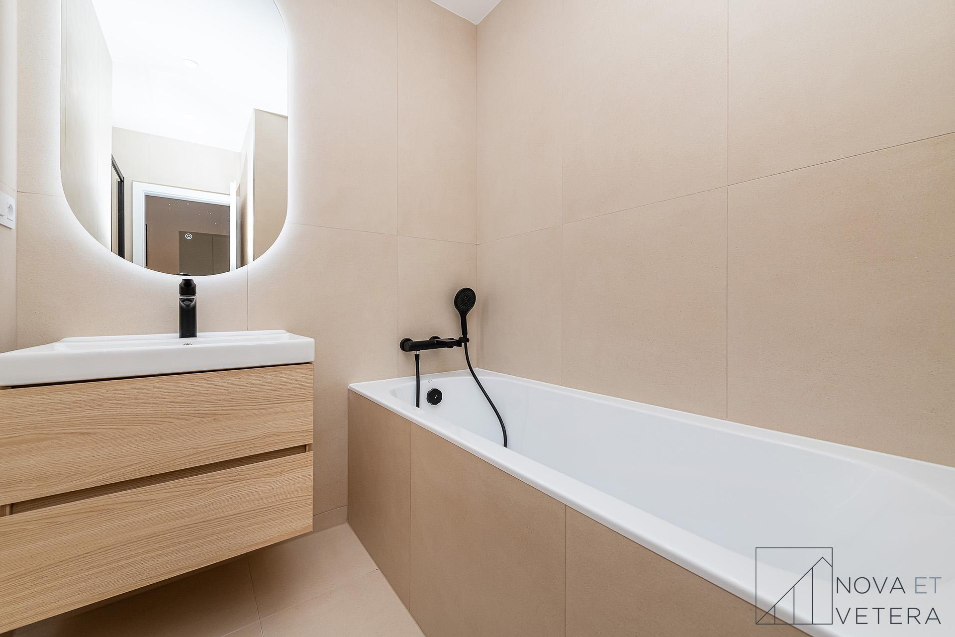 Byt právě prošel kompletní rekonstrukcí včetně nových rozvodů elektřiny, vody a odpadu, moderní dřevěné podlahy, obklady a dlažbu italské značky Marazzi, koupelnu a toaletu se sanitou Grohe. Součástí je také nová kuchyňská linka vybavená vestavnými spotřebiči Gorenje s prodlouženou zárukou 5 let.