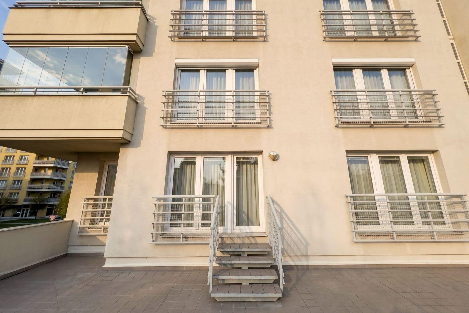 Dispozice bytu nabízí prostorný obývací pokoj s kuchyňským koutem a přímým vstupem na západně orientovanou terasu, která představuje výjimečný benefit této nemovitosti. Terasa poskytuje dostatek prostoru pro relaxaci i vlastní realizaci – nabízí se například vybudování venkovního posezení, grilu či privátní vířivky dle představ nového majitele. Součástí je také vyvýšený záhon se vzrostlými cedry, který dodává prostoru zeleň a příjemnou atmosféru soukromí. Dále jsou k dispozici dva samostatné pokoje s francouzskými okny, které lze využít jako ložnici, dětský pokoj či pracovnu. Byt disponuje koupelnou se sprchovým koutem a toaletou, druhou samostatnou toaletou, praktickou technickou místností vhodnou i jako komora a vstupní chodbou s dostatkem prostoru pro úložná řešení.