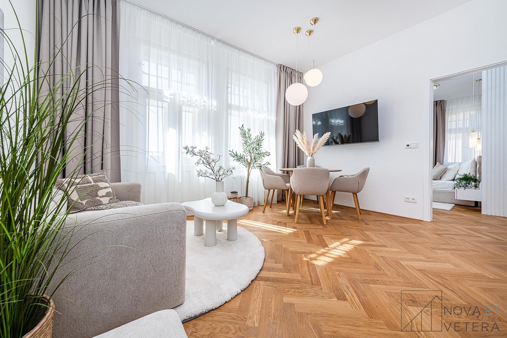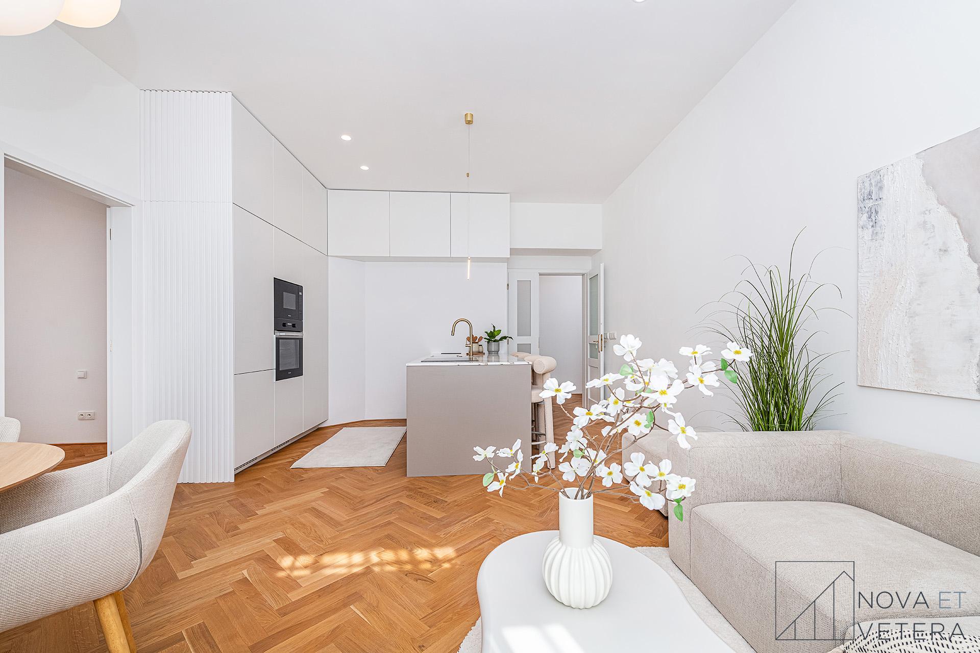 Jedná se o kompletně zrekonstruovaný byt ve vysokém standardu, který je součástí projektu Rezidence Norská. Dům z počátku 20. století spolu se společnými prostory prošel v letošním roce citlivou rekonstrukcí s důrazem na detail a zachování historické autenticity, aby byty poskytovaly komfort a splňovaly požadavky moderního městského bydlení.