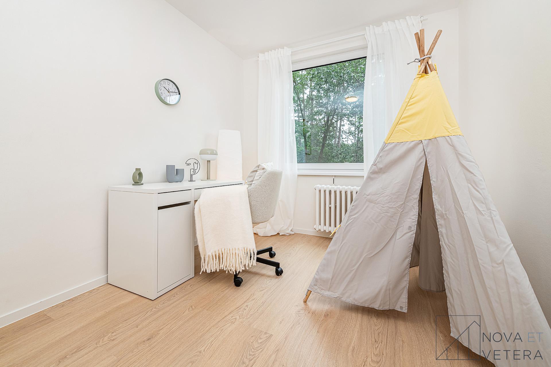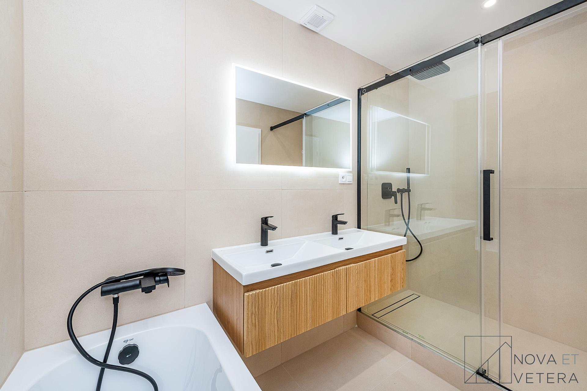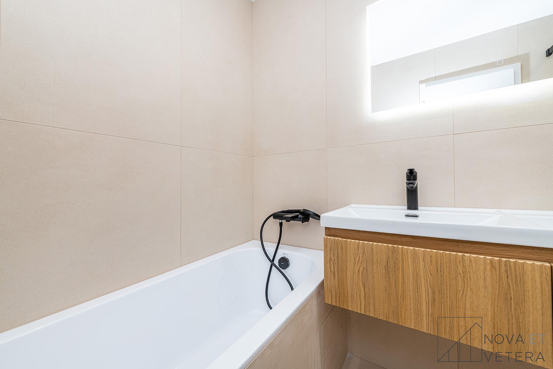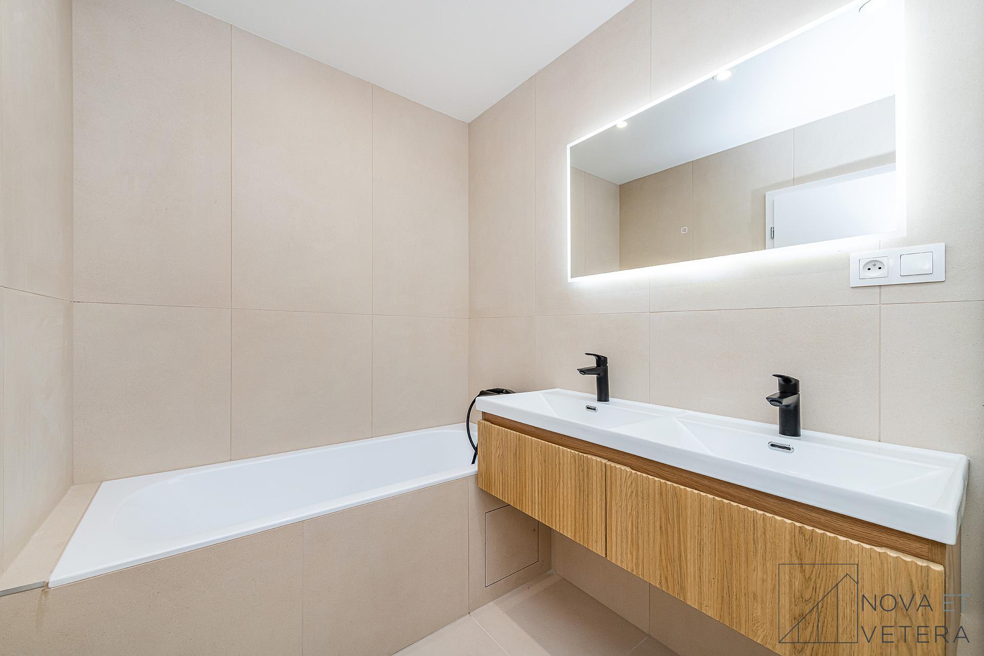 Byt právě prošel kompletní a kvalitní rekonstrukcí, která zahrnuje nové rozvody elektřiny, vody a odpadů, nové podlahy, moderní obklady a dlažbu značky Marazzi, koupelnu se sprchovým koutem se sanitou Grohe a také novou kuchyňskou linku se spotřebiči Gorenje s prodlouženou pětiletou zárukou.