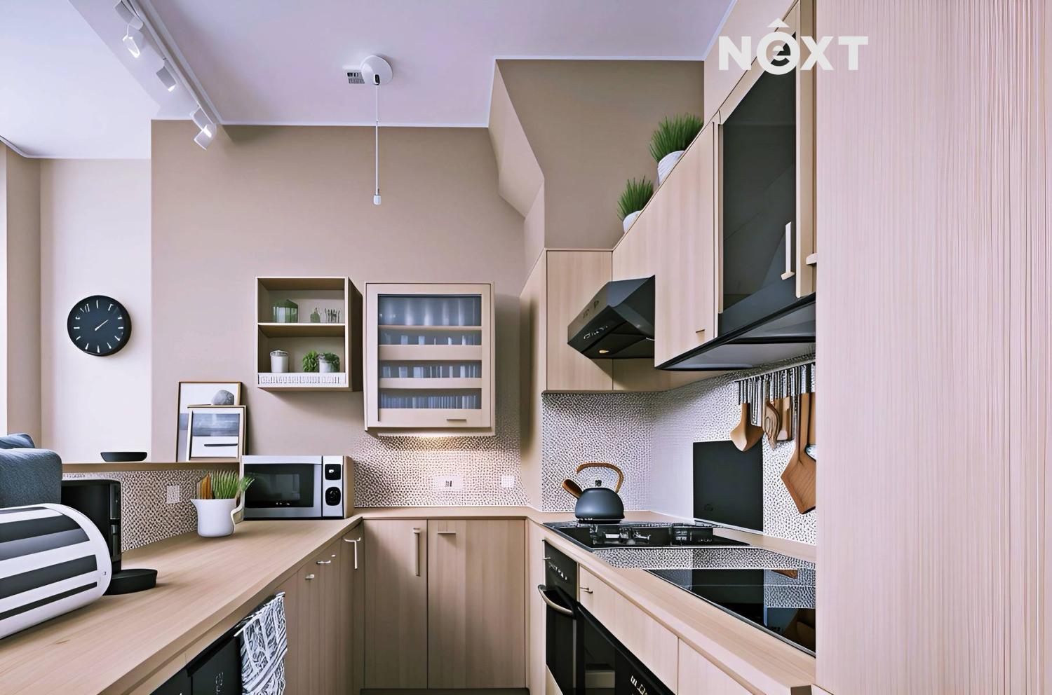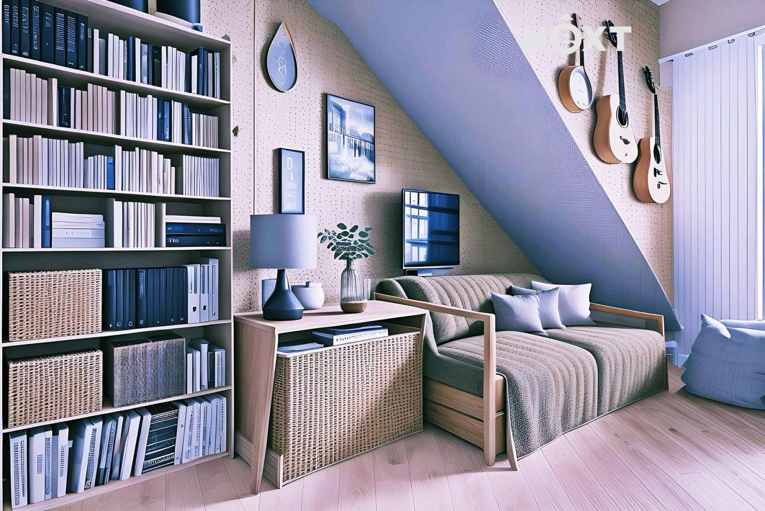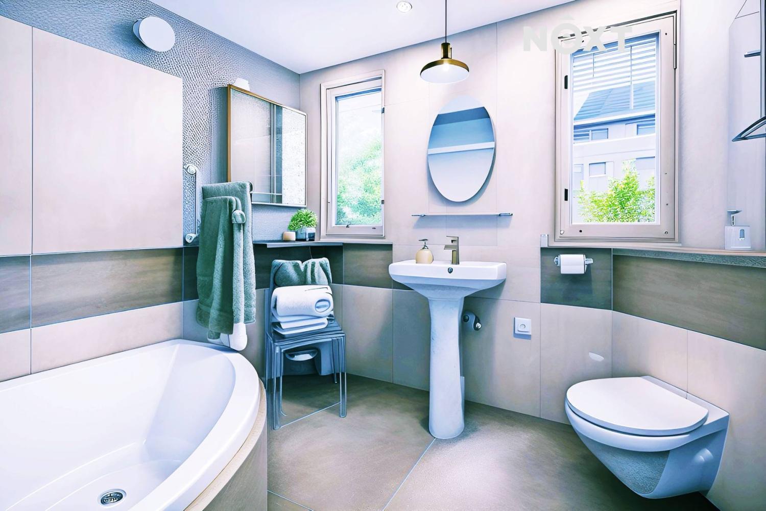 Dominantou je vysoký strop ve vzdušné vstupní hale, na kterou navazuje kuchyňský kout i obývací prostor, a pak dveře dalších místností. Byt nabízí dostatek úložných prostor – vestavěné skříně, knihovnu, zrcadlovou niku, praktické výklenky. Komfort zvyšuje rohová vana, ale i netradiční prvky jako bytelná hrazda nebo ribstol pro domácí cvičení. Na podlahách najdete kombinaci dřevěných parket a vyhřívaného teraca. O vytápění i ohřev vody se stará vlastní plynový kotel, důmyslně ukrytý tak, aby nerušil interiér.