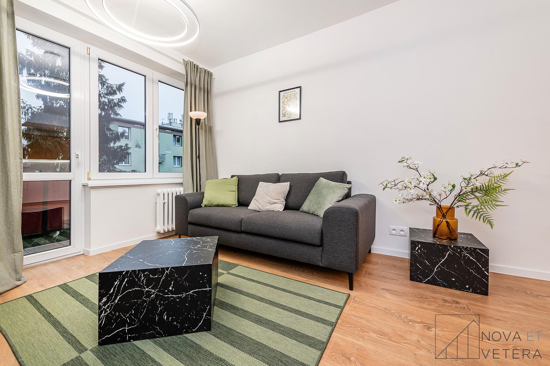 Dispozice bytu nabízí prostorný obývací pokoj s kuchyňským koutem se vstupem na balkon s výhledem do zeleně a tři samostatné pokoje, které lze využít jako ložnici, dětský pokoj či pracovnu. Dále byt disponuje koupelnou se sprchovým koutem, samostatnou toaletou, technickou místností a vstupní chodbou s dostatkem prostoru pro úložná řešení.