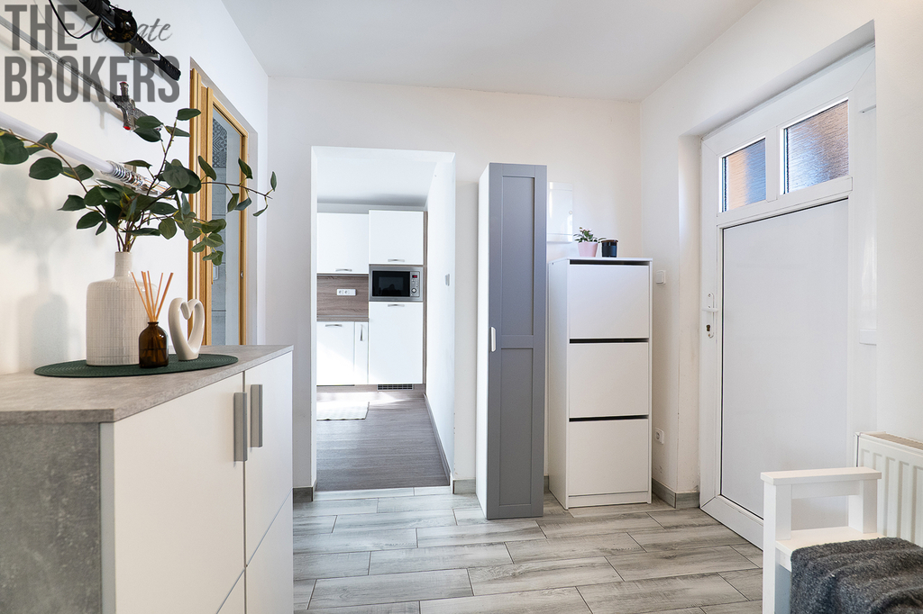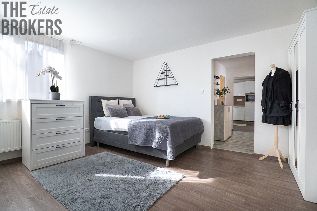 Byt se samostatným vchodem: Jednotka o dispozici 1+1 s vlastní koupelnou, která je přístupná přímo ze zahrady. Tento prostor je ideální pro návštěvy, pronájem nebo jako kancelář.