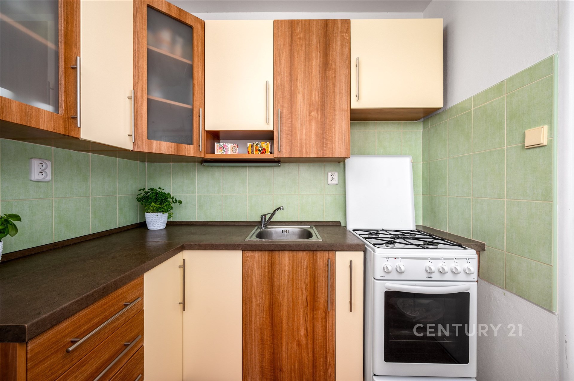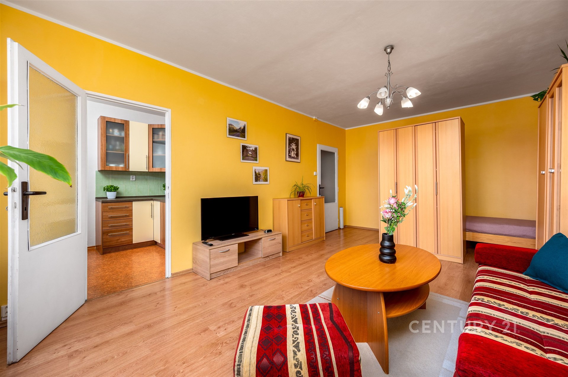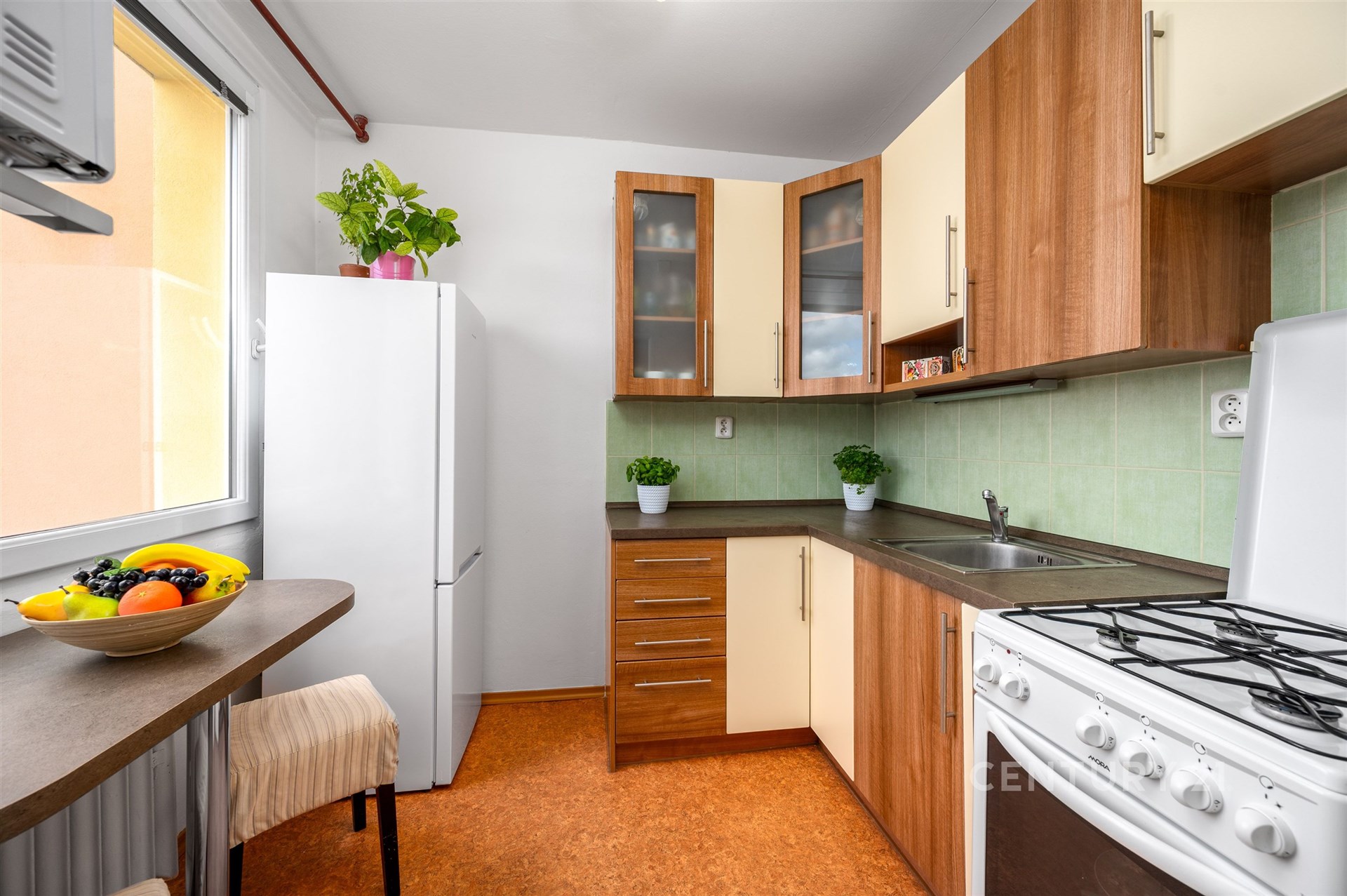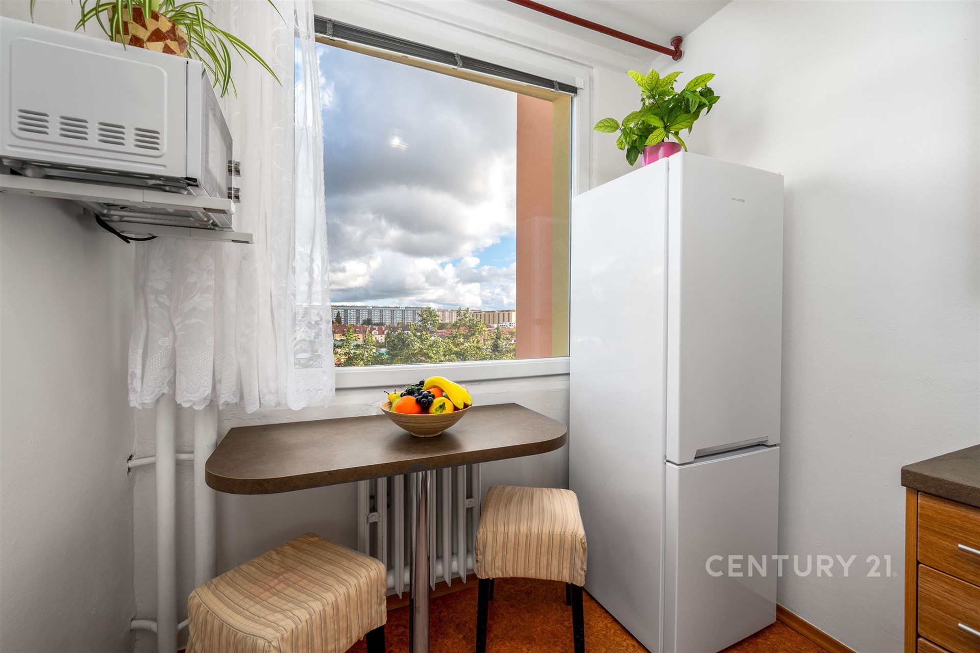 Díky velkým oknům je interiér bytu po celý den zalitý přirozeným světlem a nabízí příjemný, uklidňující výhled do okolní zeleně a vzrostlých stromů. Dispozice bytu je navržena s důrazem na funkčnost a pohodlí, kde hlavní obytný pokoj doplňuje samostatná kuchyň s jídelním koutem, což je benefit, který je v této kategorii bytů stále více ceněn.