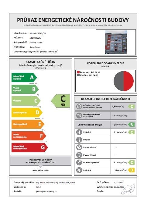 - Energetický ukazatel podle vyhlášky: č. 264/2020 Sb.