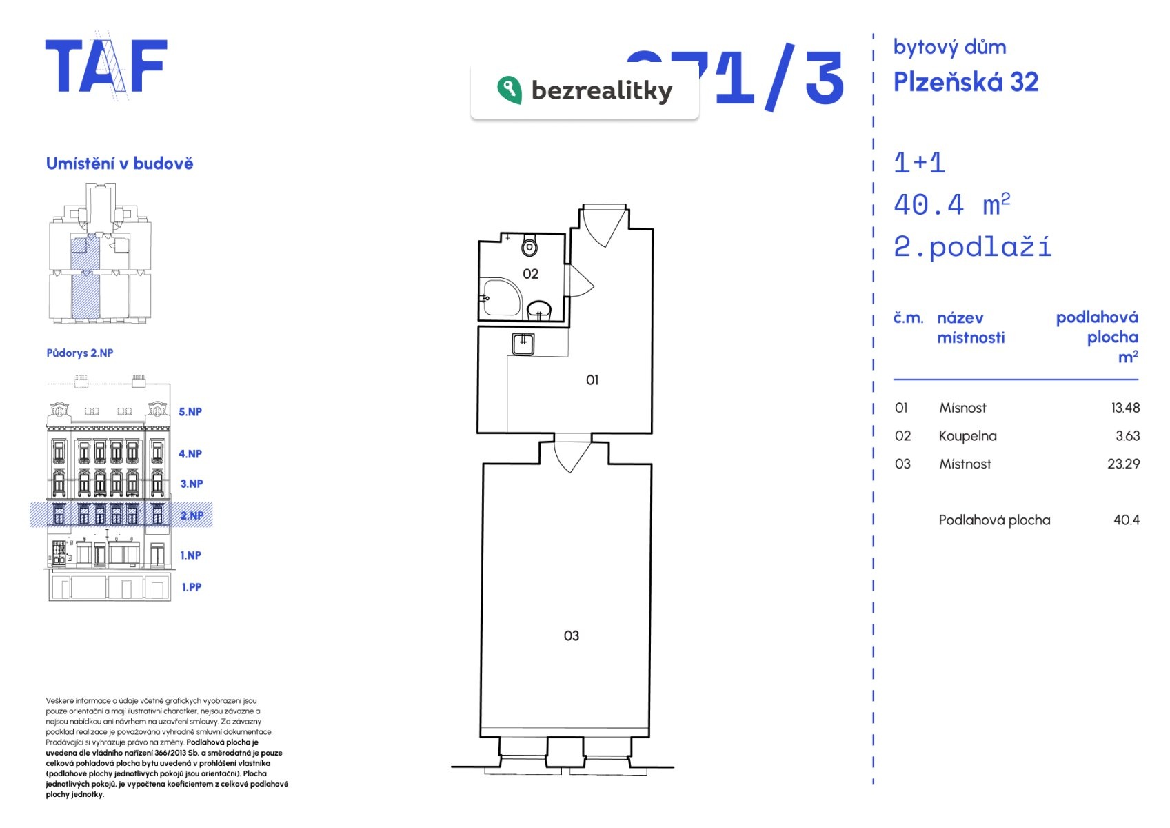 | Dispozice/podlahová plocha: | 1+1/40 m² |