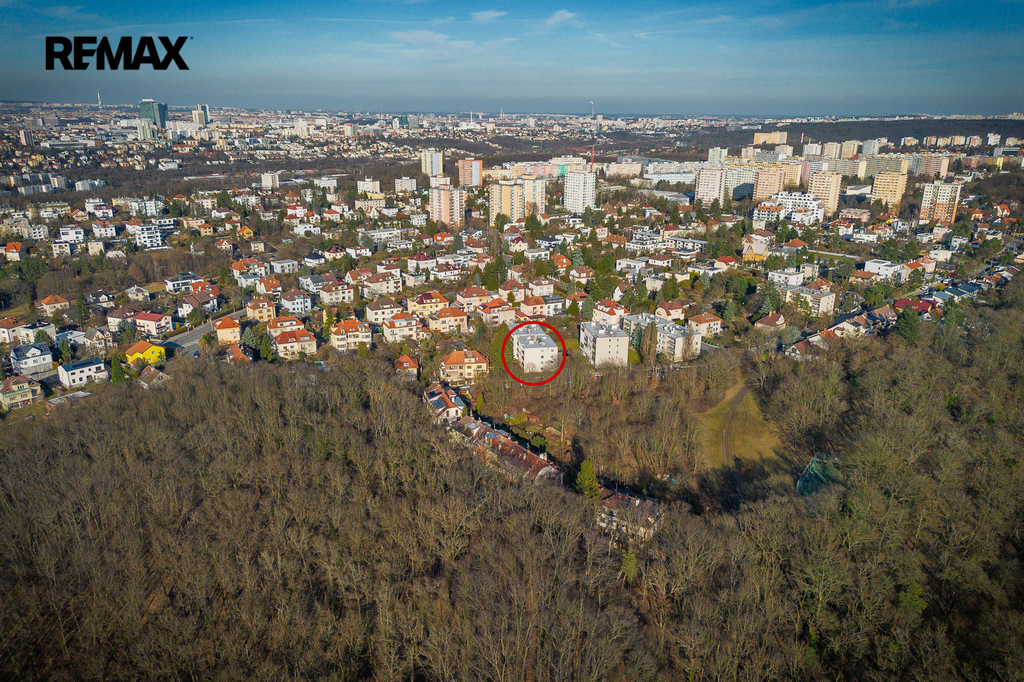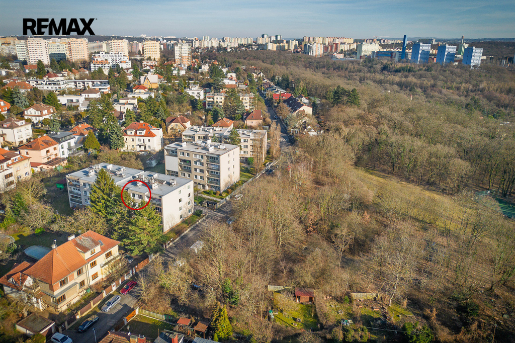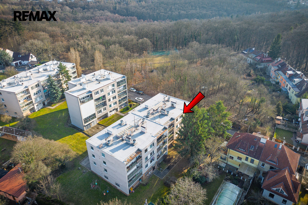 Klidný čtyřpodlažní dům na vlastním oploceném pozemku a s pouze 10 byty prakticky přiléhá k místnímu lesoparku se sportovištěm a dětským hřištěm.