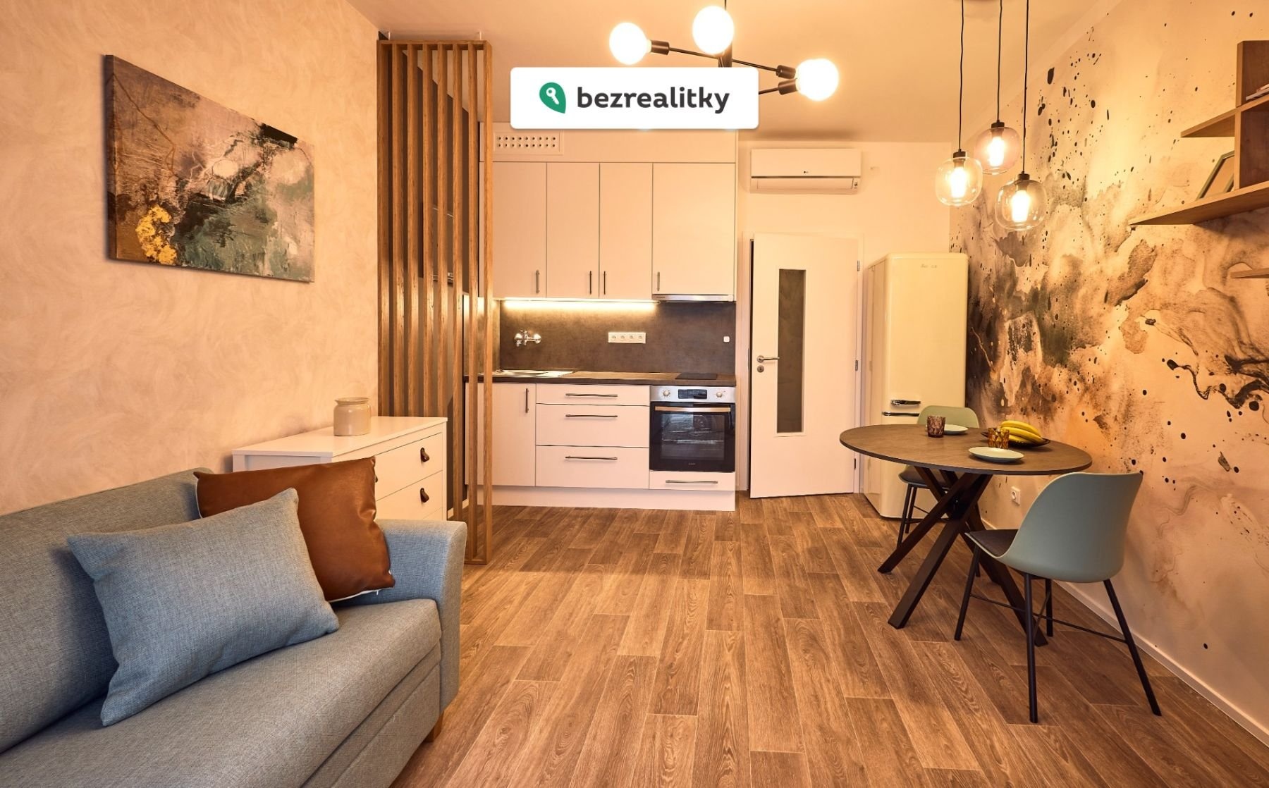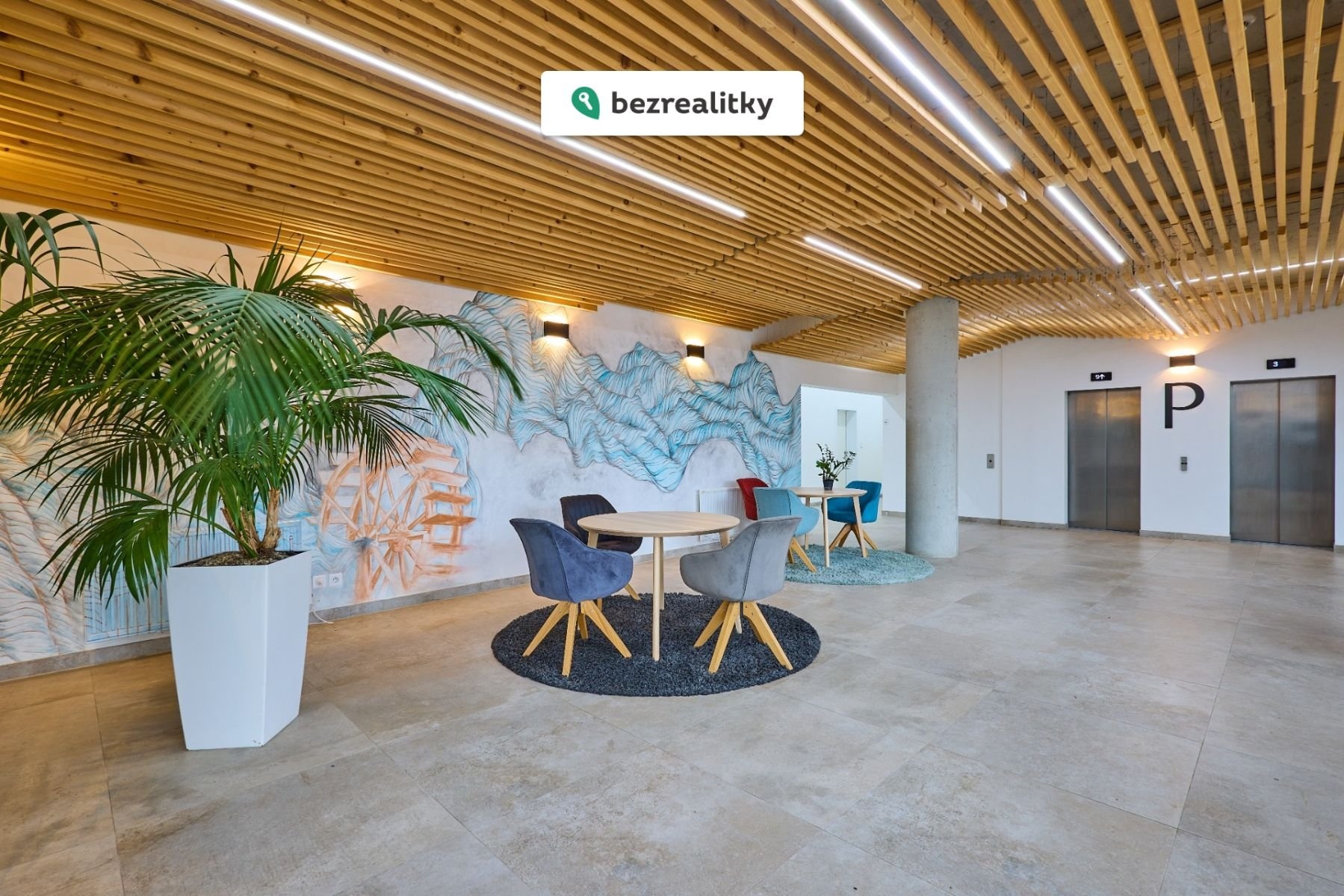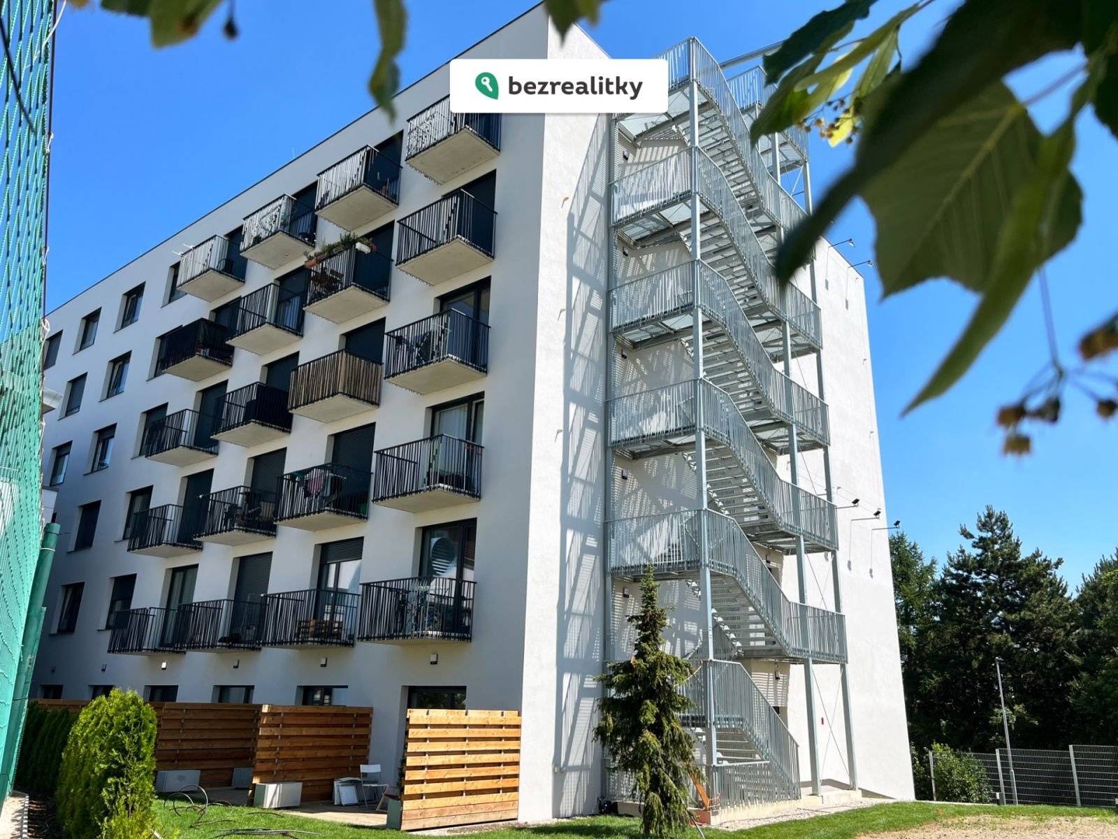 Dispozici tvoří vstupní chodba se šatní skříní, koupelna se sprchovým koutem a obytný prostor s částečně vybaveným kuchyňským koutem a vstupem na balkon. Komfortní prostředí zajišťují předokenní rolety a systém rekuperace, který udržuje čerstvý vzduch po celý rok. Energetická třída B přináší nízké provozní náklady. K dispozici je možnost pronájmu garážového stání.