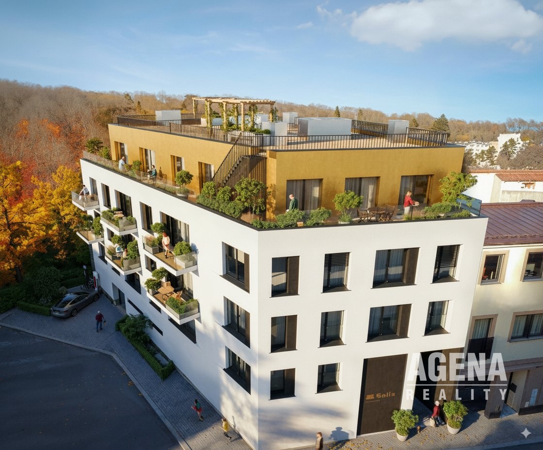 K bytu je možné dokoupit garážové stání a sklepní kóji. Projekt je komorního charakteru a nabízí celkem 21 bytových jednotek.