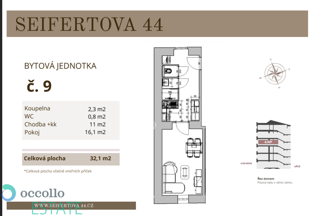 | Dispozice/podlahová plocha: | 1+kk/32 m² |