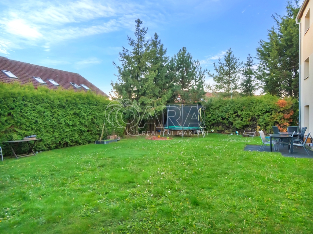 K bytu patří společná zahrada o výměře 634 m², kde si můžete vytvořit svůj vlastní kout pro odpočinek, grilování nebo posezení s přáteli. Parkování je bezproblémové přímo u domu.