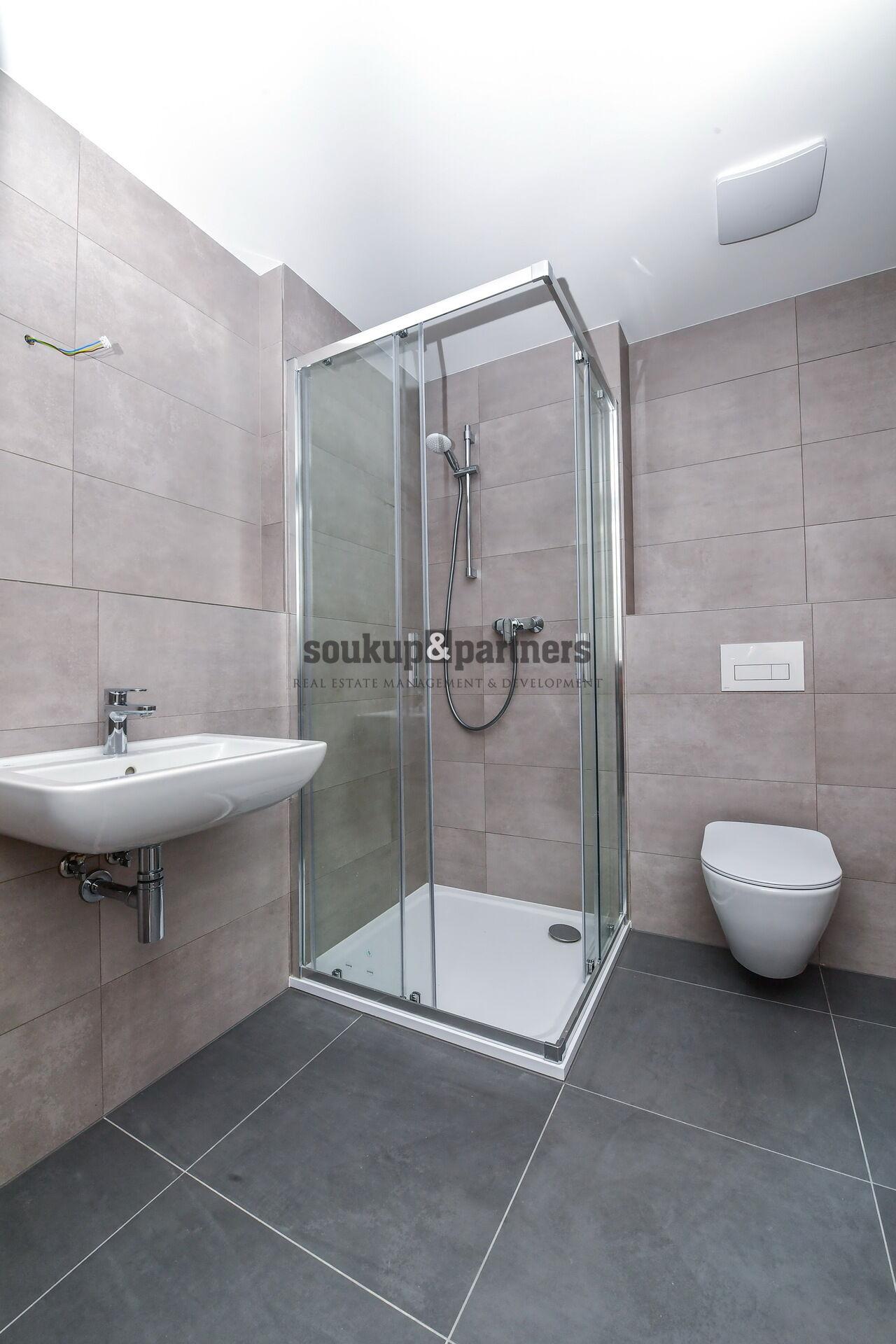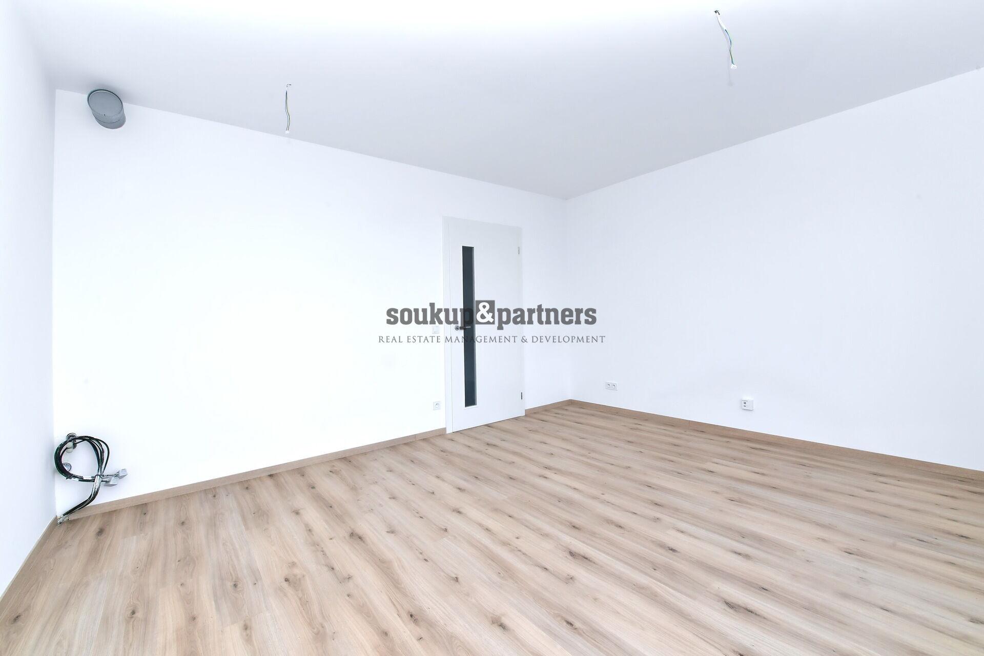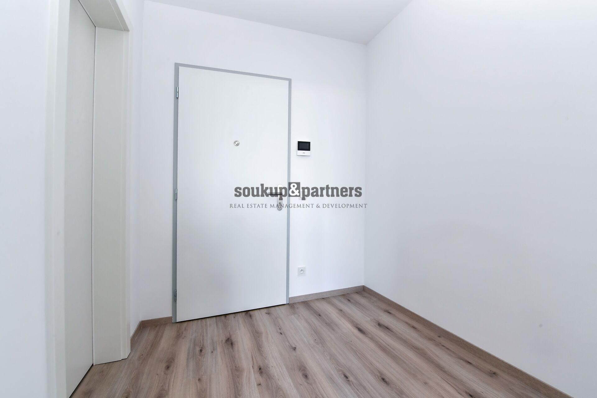 Byt je řešen s důrazem na praktičnost a funkčnost. Vstupní část tvoří předsíň s místem pro vestavěné skříně, navazující na koupelnu se sprchovým koutem a toaletou, se sanitou Hansgrohe a přípravou na pračku. Obytný prostor je připraven pro kuchyňskou linku, na podlahách jsou položeny kvalitní laminátové podlahy Mandal. Součástí jsou nové interiérové dveře rakouského výrobce.