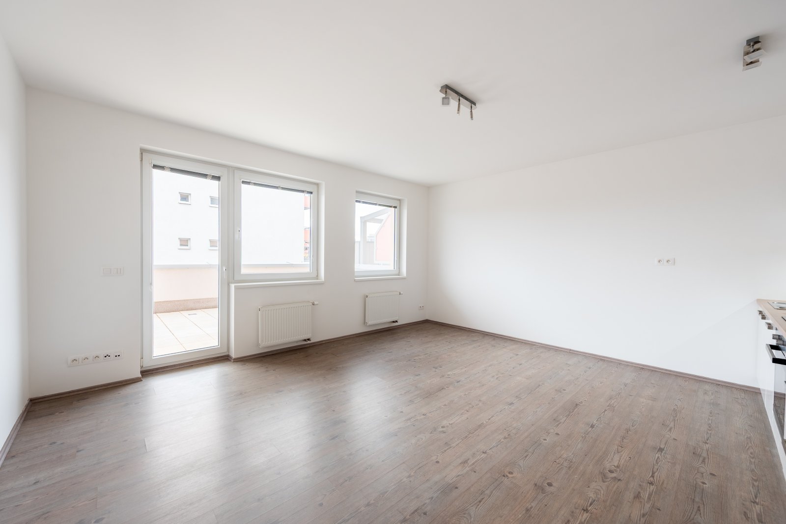 Byt je ve výborném stavu viz. přiložené foto. Vstupní chodba s prostorem na vestavěnou skříň, prostorná koupelna se sprchovým koutem, wc a místem pro pračku. Světlý obývací pokoj s kuchyňskou linkou, která nabízí dostatek pracovní plochy, úložných prostor a je vybavena vestavnými spotřebiči (myčka, lednička s mrazákem, varná deska). Vstupy do koupelny resp. obývacího pokoje řeší elegantní a praktické zásuvné dveře. Z obývacího pokoje je vstup na jihovýchodně orientovanou terasu, na které dozajista zvládnete i menší grilování či vypěstovat spoustu bylinek.