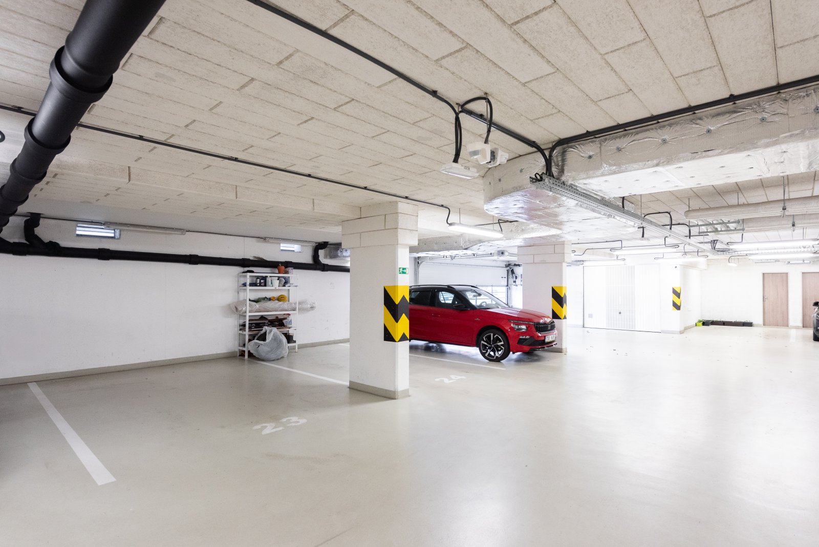 Novostavby jsou nesmírně pohodlné. Součástí bytu je zmíněné garážové stání, k dispozici je i společná kolárna/kočárkárna. Samozřejmostí je výtah a také velmi reprezentativní společné prostory. Velmi dobře fungující SVJ.