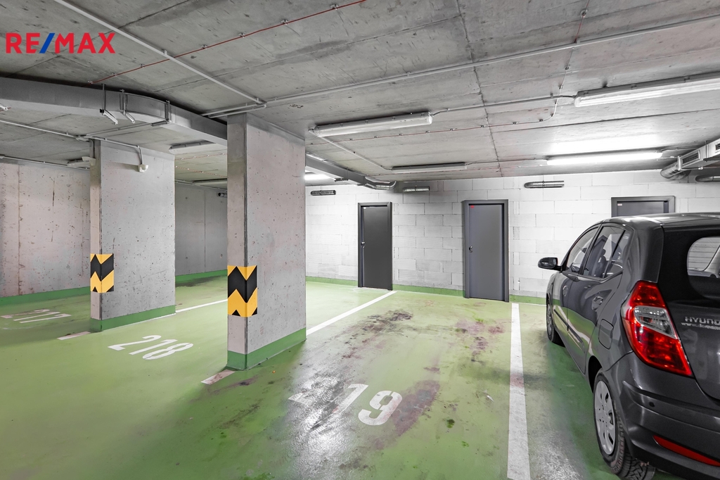 K bytu náleží kryté garážové stání přímo v domě a hned vedle něj se nachází prostorná, zamykatelná sklepní kóje o velikosti cca 4,2 m2. Nový majitel tak získá kompletní zázemí pro pohodlné bydlení bez nutnosti řešit nábytek či spotřebiče — vše je připraveno.