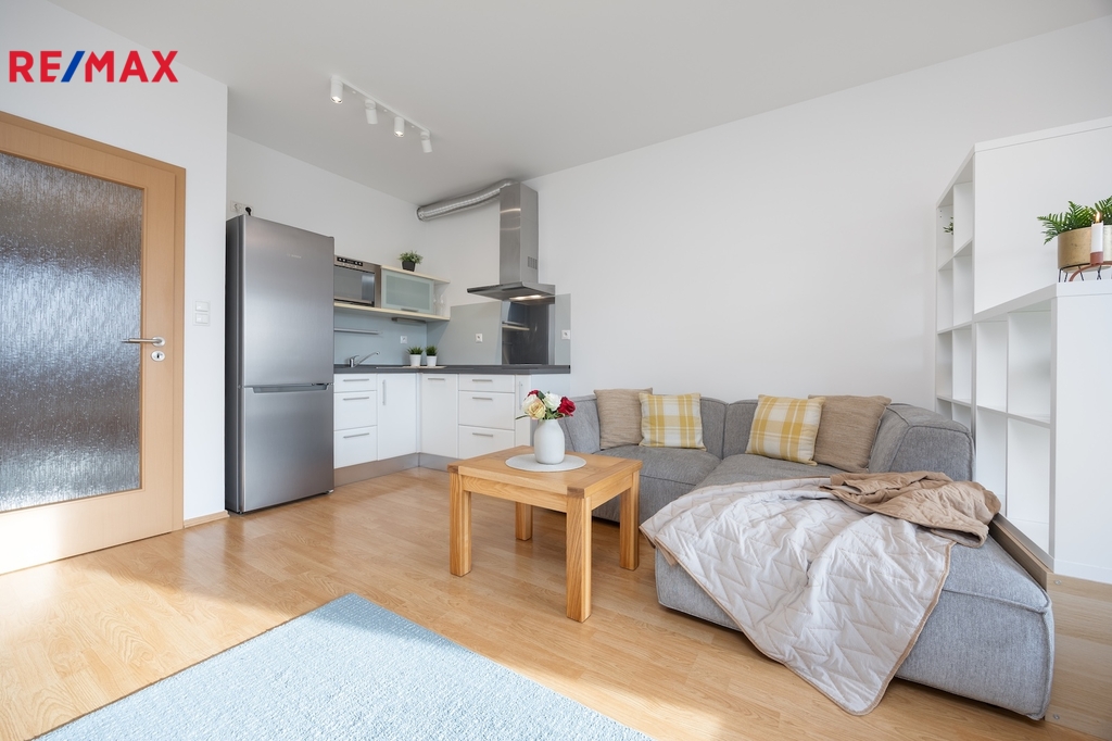 Nabízíme Vám ke koupi bytovou jednotku ve vynikajícím stavu o celkové užitné ploše 37,49 m2 + balkon 5,79 m2 + sklepní kóje 3,61 m2 (výměry dle prohlášení vlastníka) s výhledem na jih do parčíku. Byt, nacházející se v 2. nadzemním podlaží skeletového domu, se skládá z obývacího pokoje s kuchyňským koutem, praktické komory, koupelny s toaletou a chodby. Vstup na balkon je pak možný přímo z obývacího pokoje.