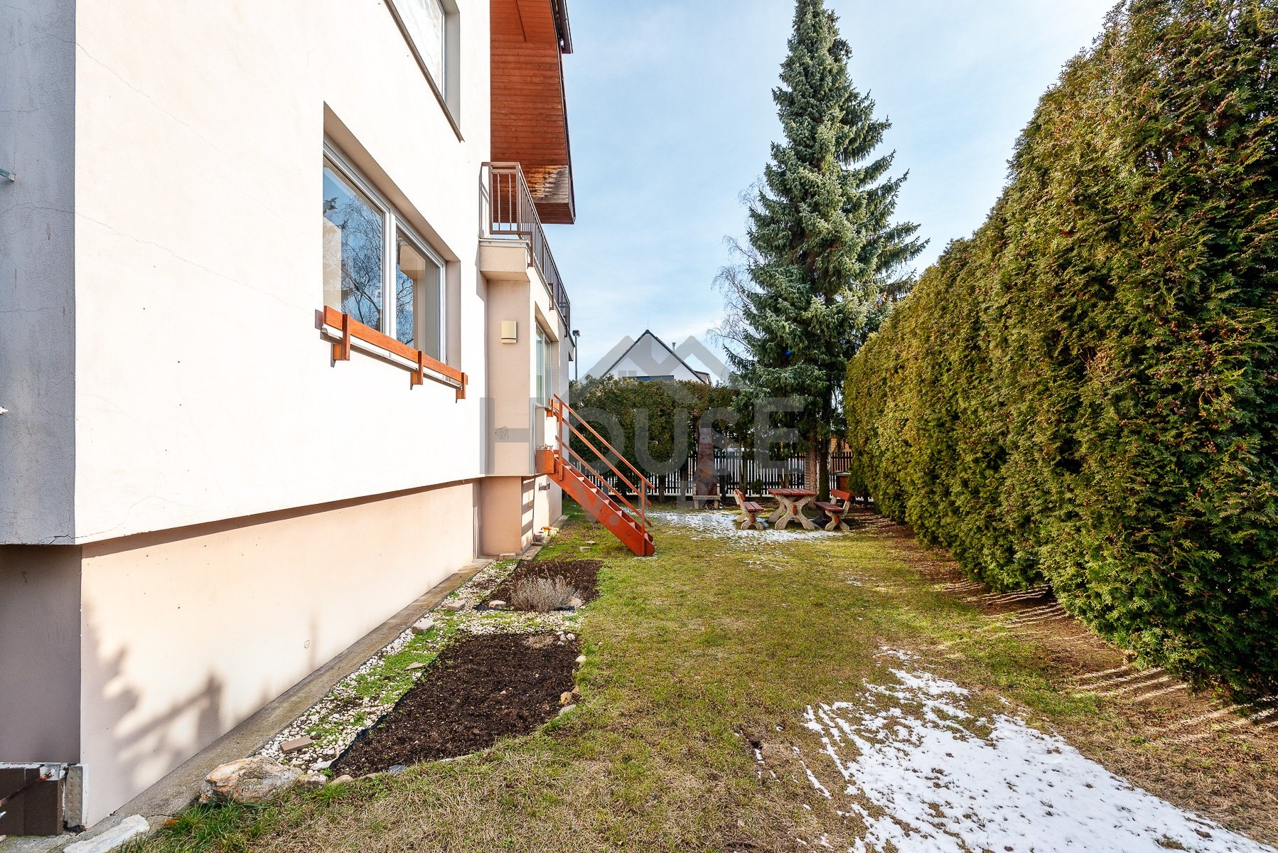 Součástí domu je společná zahrada o výměře 326 m², ideální pro relaxaci, posezení nebo hry s dětmi.