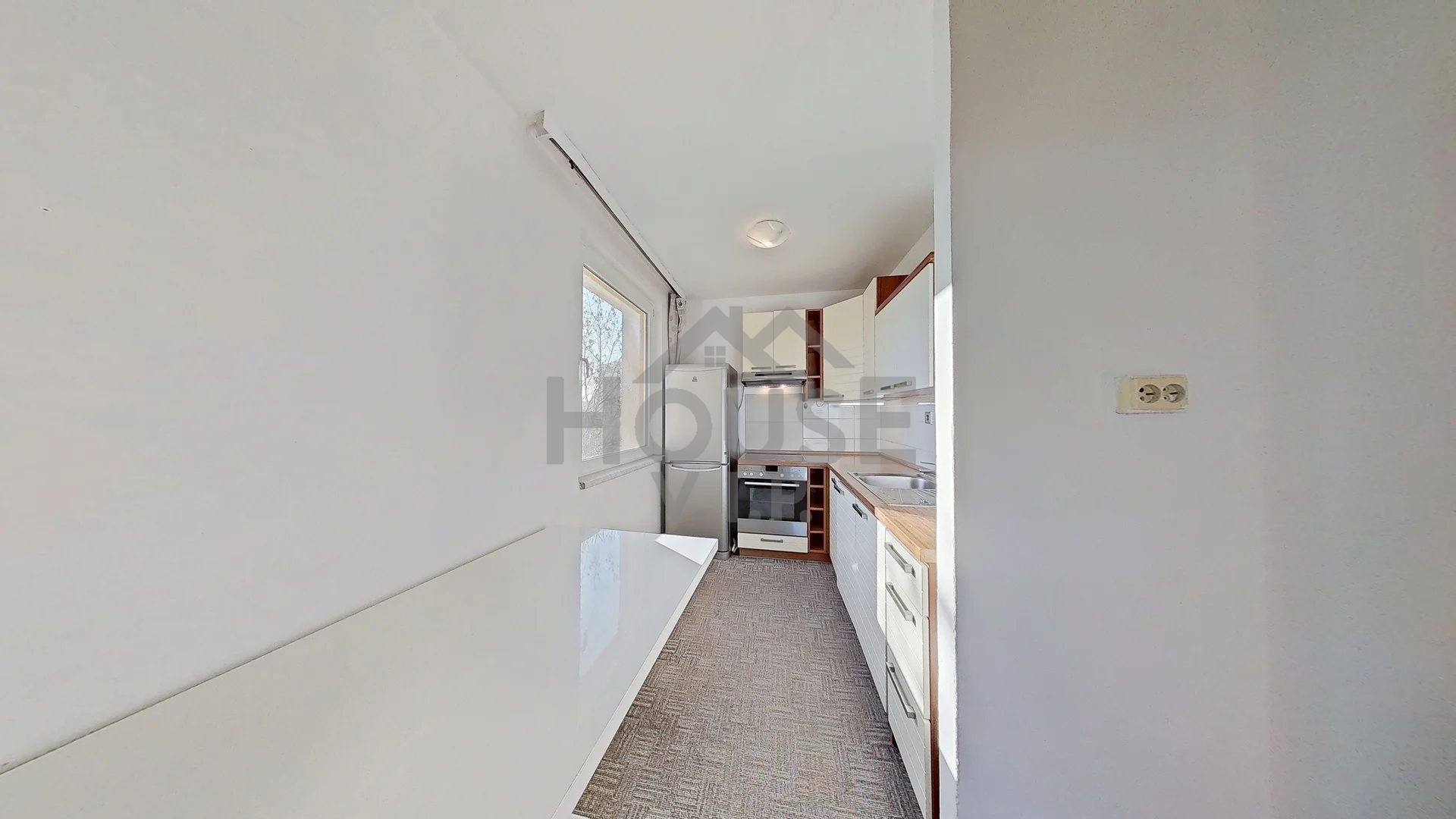 Byt se prodává nezařízený – zůstává pouze vestavěná skříň v předsíni a kuchyňská linka se sporákem.
