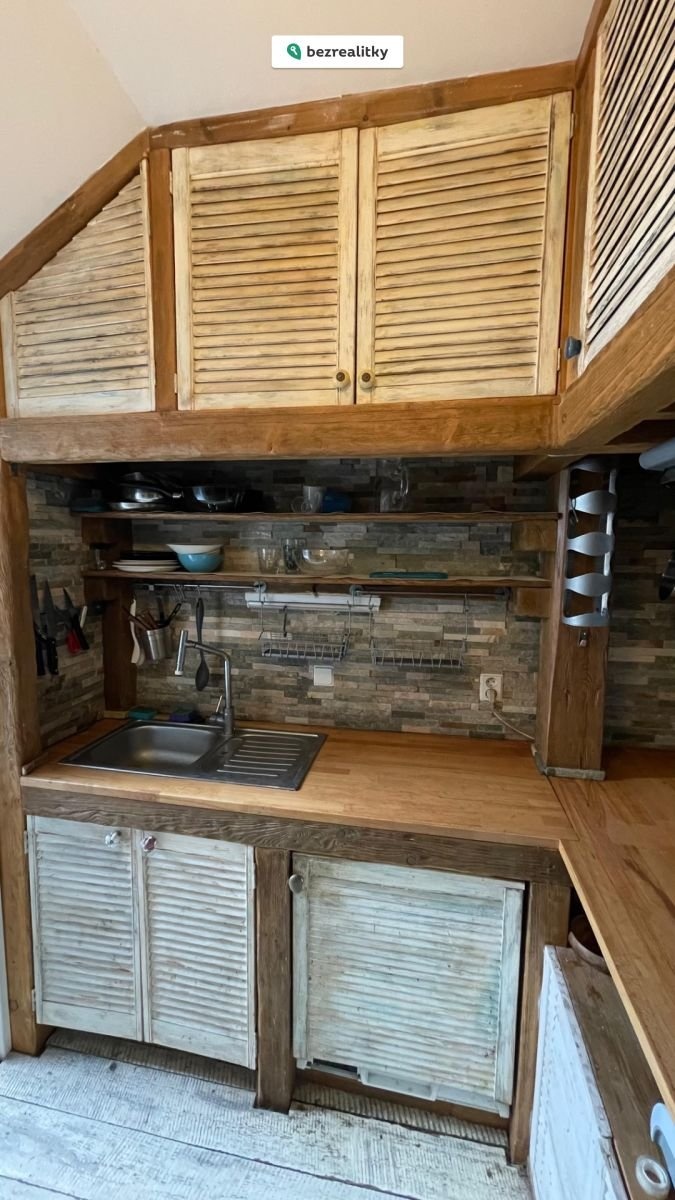 Byt má jedinečný styl – kombinace dřeva, starožitných prvků, dekorativních obkladů a útulného podkroví s romantickými detaily. Každý prostor je originální, funkční a vhodný k okamžitému využívání i pronájmu.