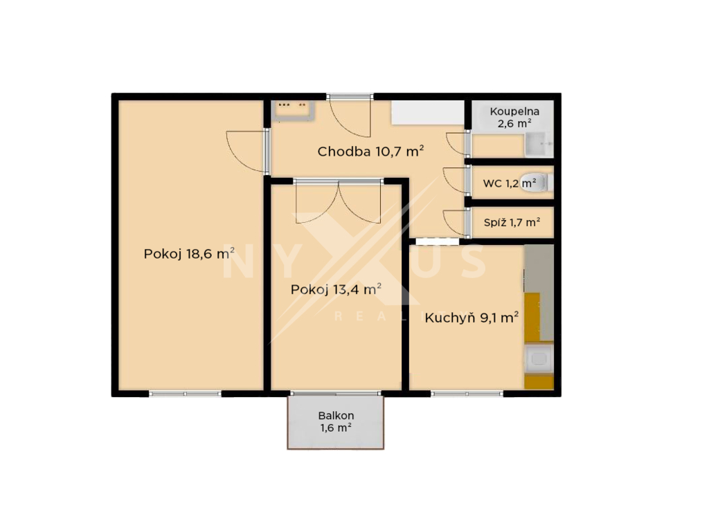 - Dispozice bytu: 2+1