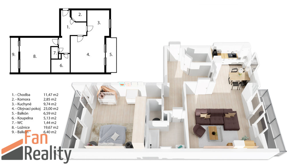 Celková plocha 79 m² – nadstandardně prostorné pokoje