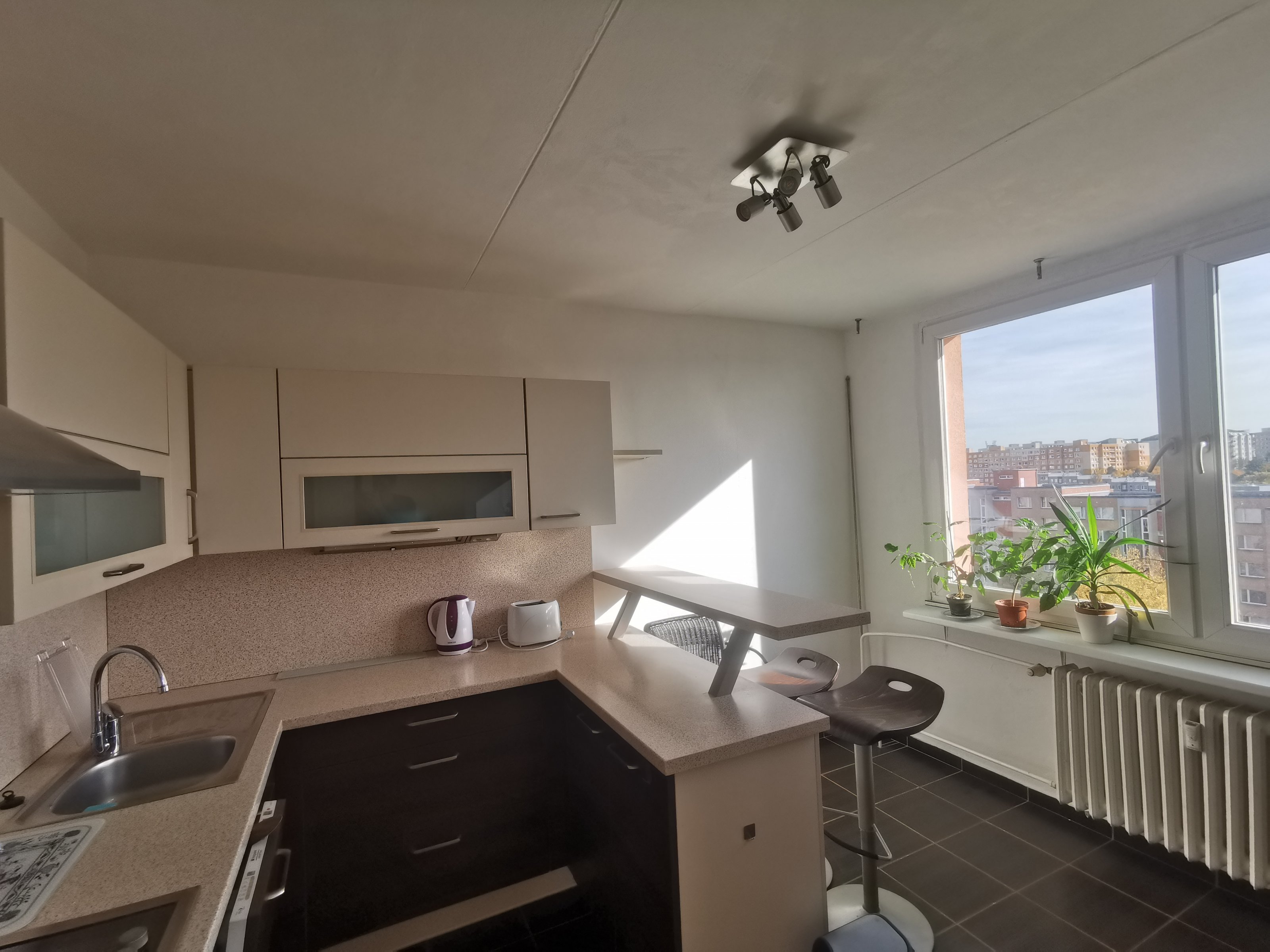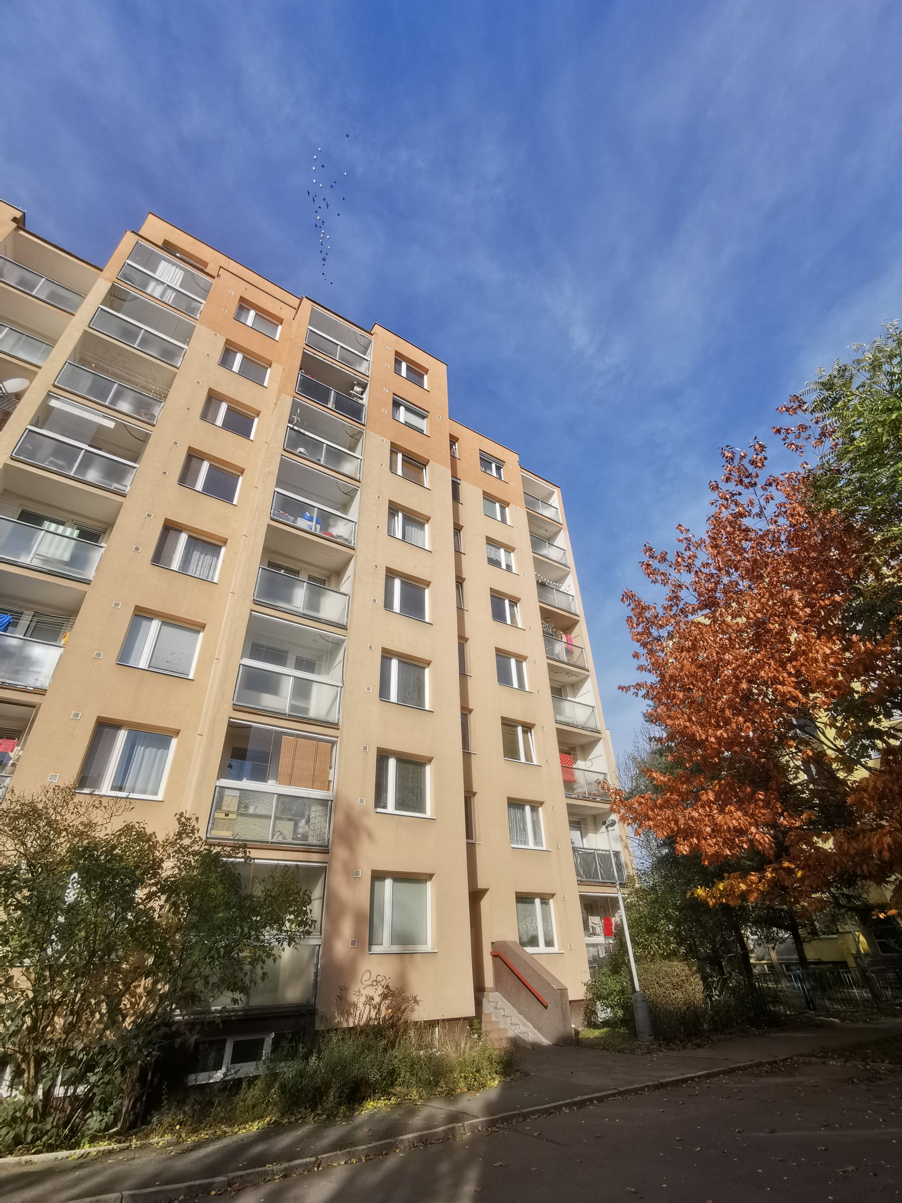 Byt je umístěn v 8.(posledním) nadzemním podlaží revitalizovaného panelového domu.
