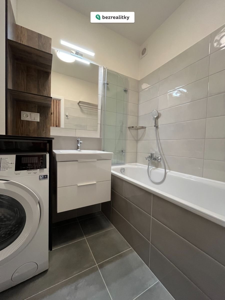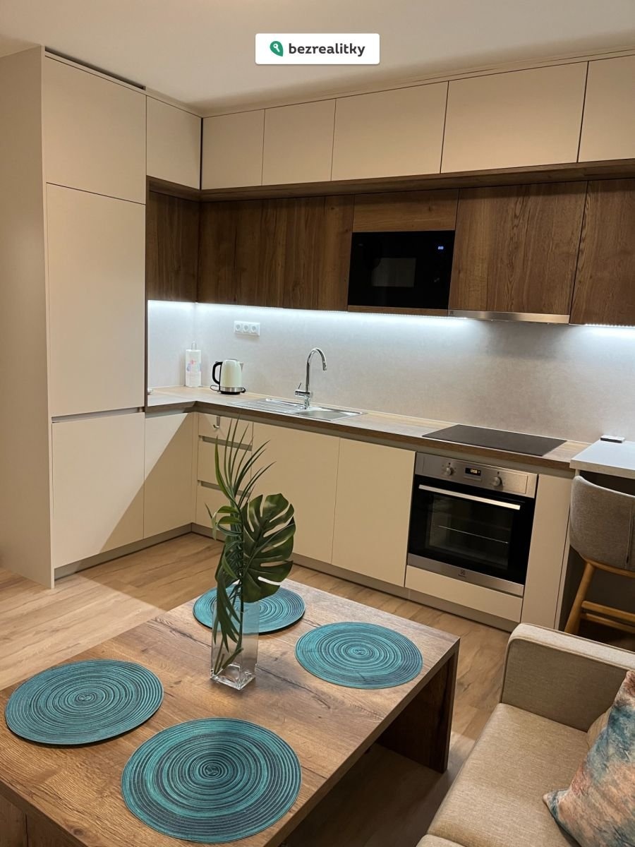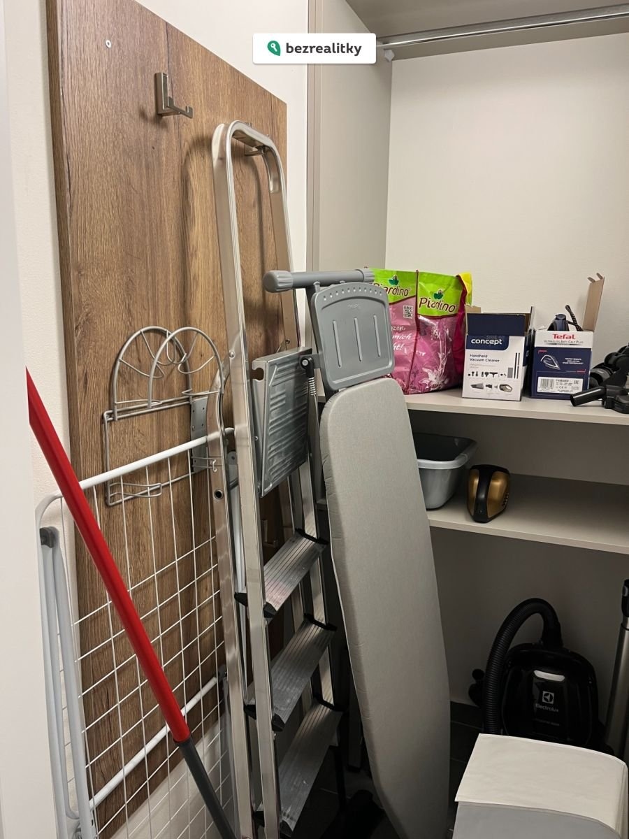 Byt je plně a kvalitně vybavený - klimatizace, trouba, varná deska, mikrovlná trouba, lednice, mraznička, rychlovarná konvice, veškeré vybavení kuchyně (jako např. talíře, hrníčky, hrnce, příbory, misky apod.), pračka se sušičkou, venkovní a vnitřní sušák na prádlo, žehlička, žehlící prkno, velký vysavač, ruční vysavač, schůdky, potřeby pro úklid, peřiny, povlečení, prostírání, ručníky - prostě vše, stačí se jen nastěhovat.
