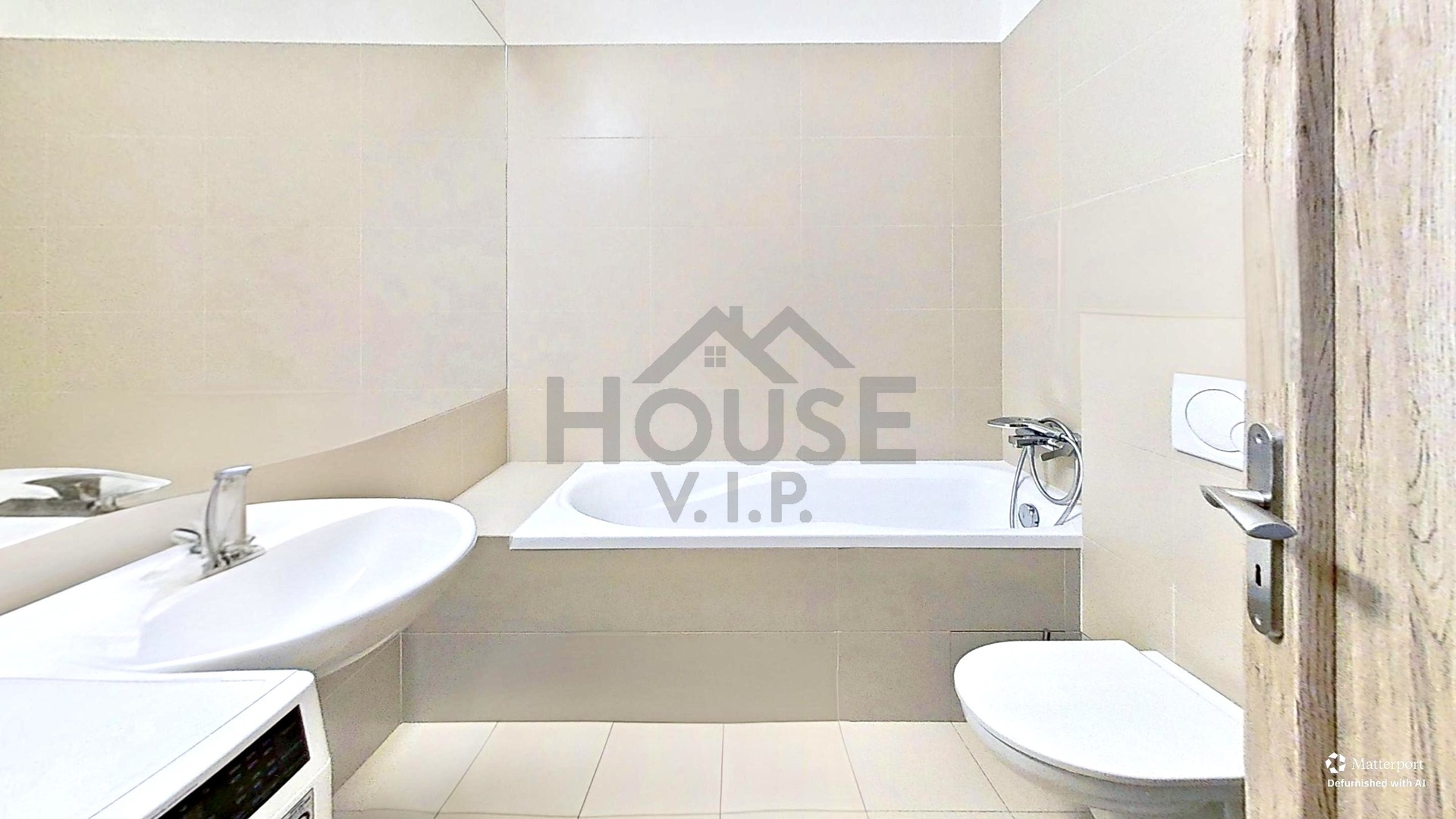 ložnice s vestavěnými skříněmi, koupelna s vanou, WC a pračkou.