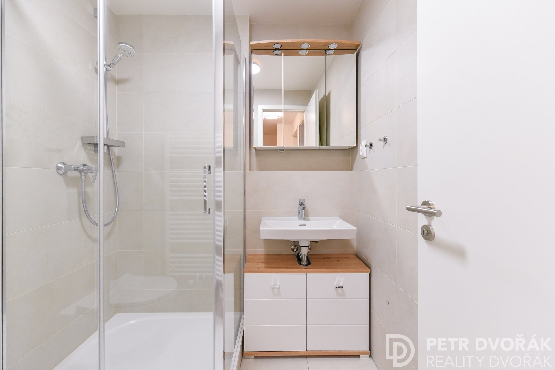 Dispozici 2+kk tvoří prosvětlený obývací pokoj s plně vybaveným kuchyňským koutem a navazující ložnice. Velkoformátová okna s izolačními trojskly a elektricky ovládanými exteriérovými žaluziemi zajišťují v interiéru příjemné klima po celý rok. Byt je vybaven systémem řízeného větrání s rekuperací tepla a inteligentním systémem Somfy TaHoma.