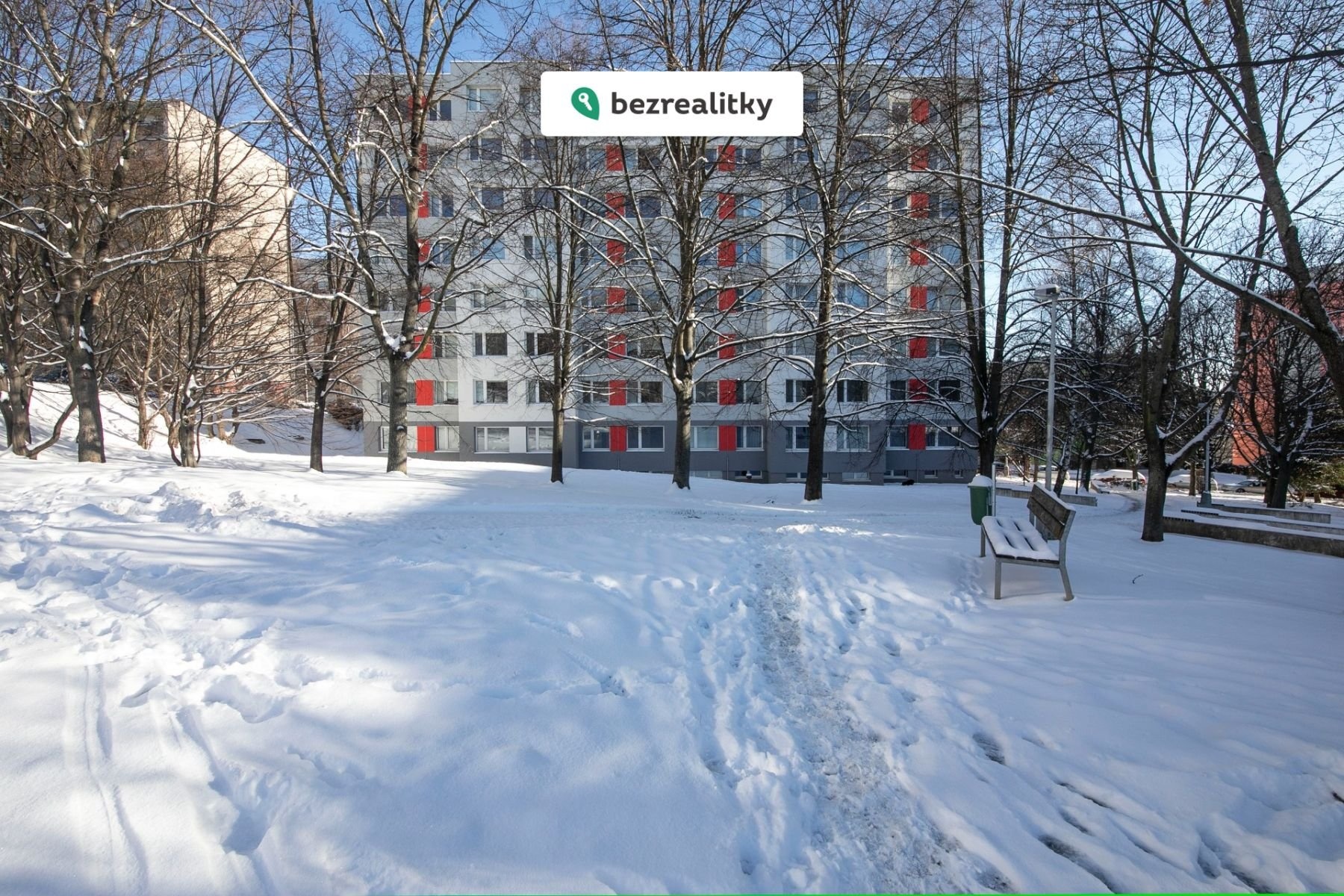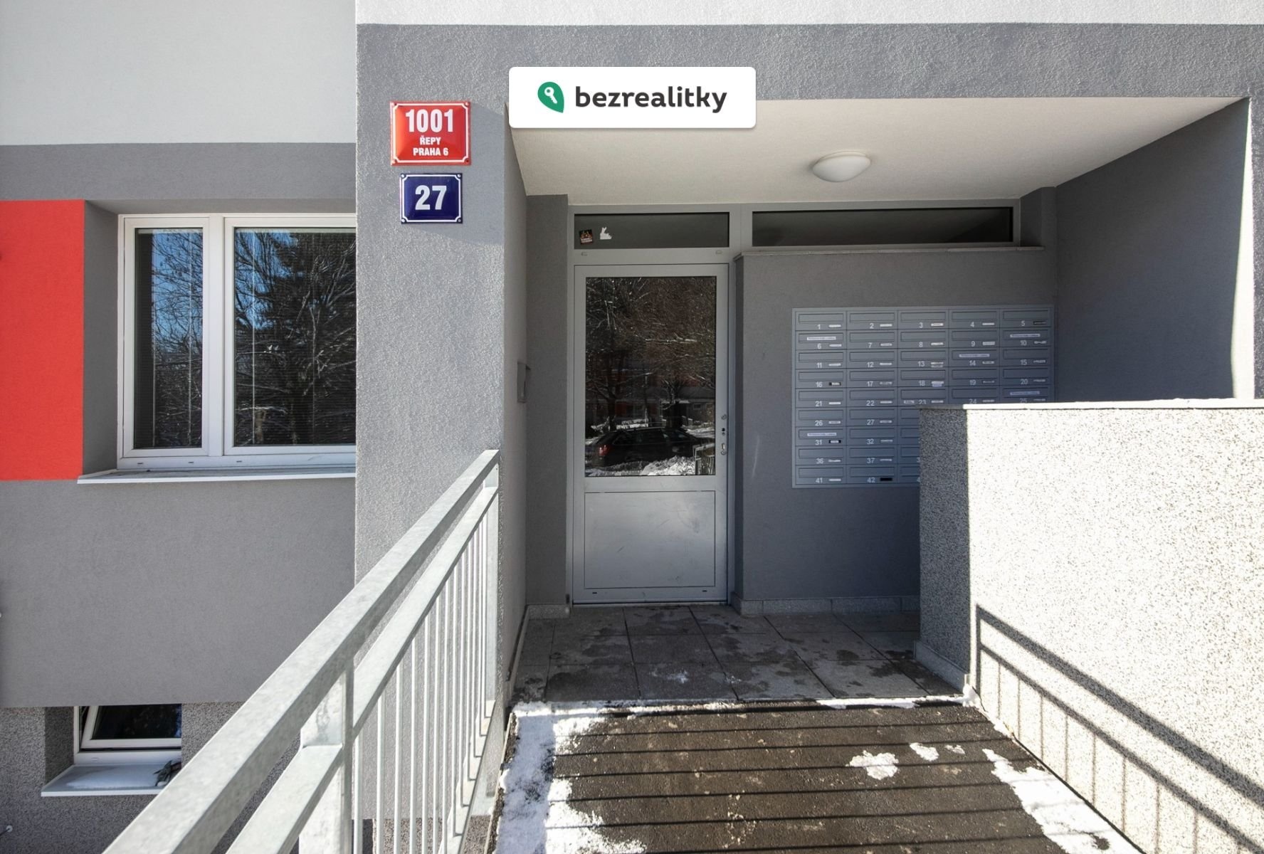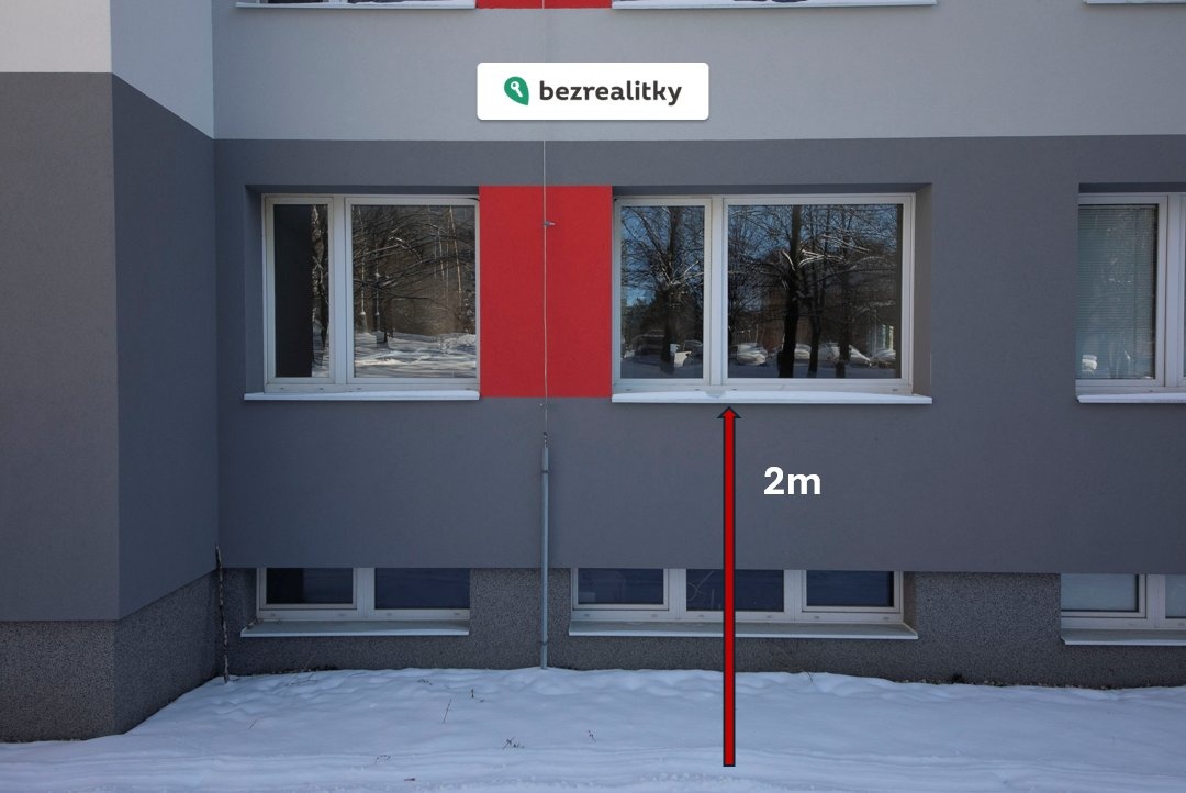 Byt se nachází ve zvýšeném přízemí – spodní hrana parapetu je 2 metry nad úrovní terénu, což zajišťuje dostatek soukromí i bezpečí. Okna jsou orientována do zeleně, která dům obklopuje a vytváří příjemnou, klidnou atmosféru.