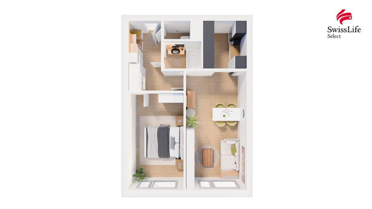 | Dispozice/podlahová plocha: | 2+kk/43 m² |