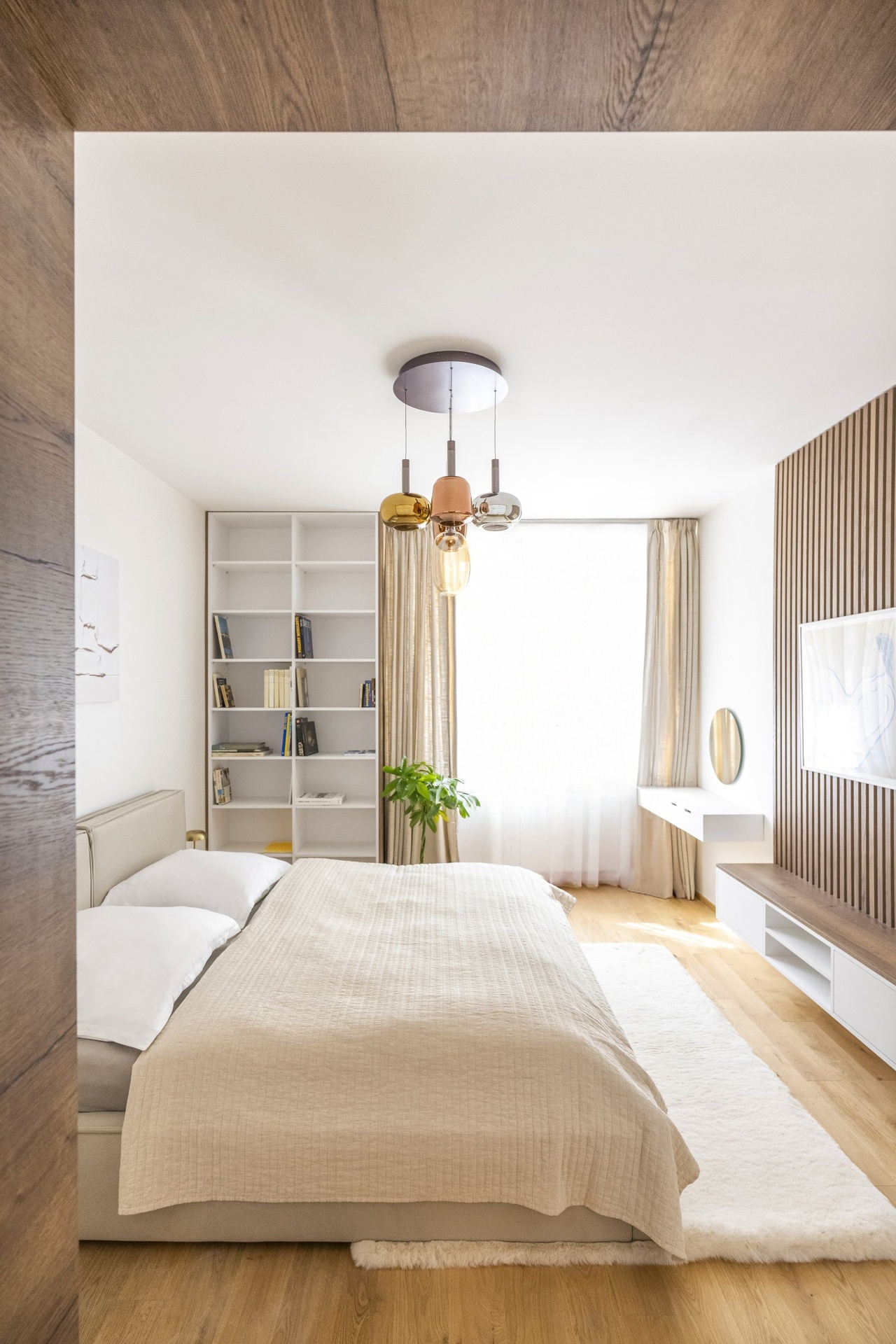 Půdorys bytu v 1. podlaží a o a podlahové ploše 58 m² zahrnuje obývací pokoj s přípravou na kuchyni, ložnici, vstupní chodbu, praktickou komoru, koupelnu se sprchovým koutem a samostatnou toaletou. K jednotce náleží také sklepní kóje. Byt bude dokončen v provedení fit out – včetně hotové koupelny, podlah, dveří a kompletních rozvodů. Veškeré vybavení odpovídá současným standardům moderního bydlení.