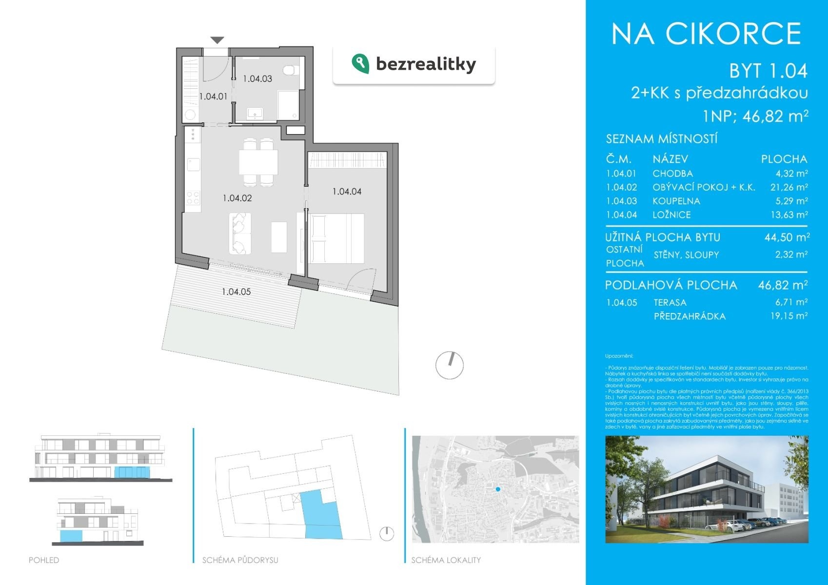 V případě zájmu o prohlídku i další informace je možné mě kontaktovat skrz zprávy na této komunikační platformě, nebo navštivte náš web projektu www.rezidencecikorka.cz, vizualizace bytů jsou vč. klienstských změn a nejsou součástí bytu. Tato nemovitost je určena výhradně přímým zájemcům o koupi. Na inzerát můžete také reagovat přímo na webu Bezrealitky.