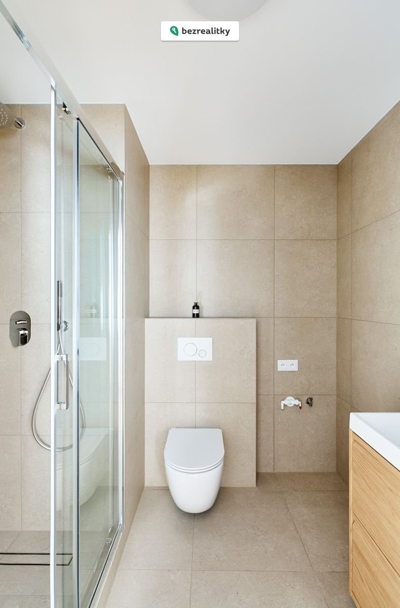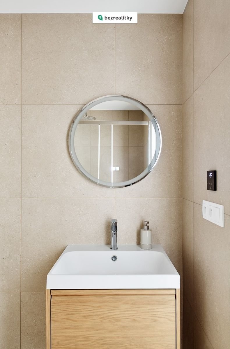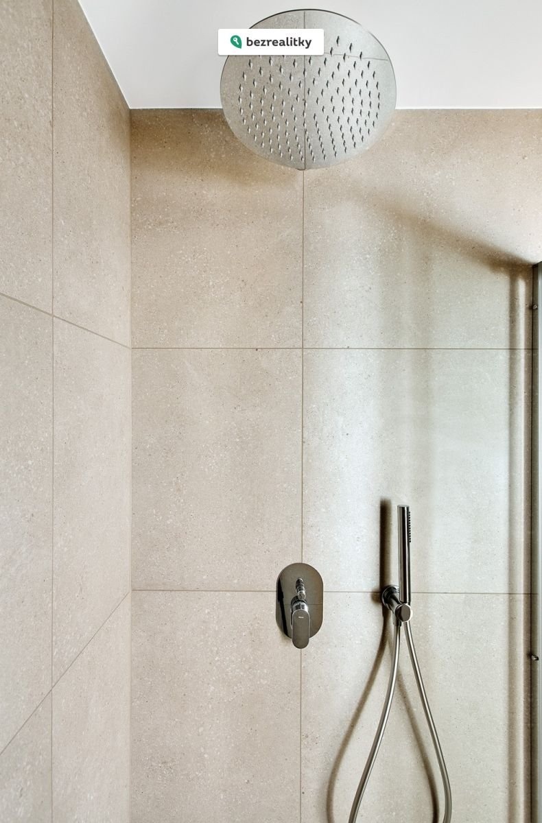 - koupelnu s přípravou na pračku i sušičku, s velkoformátovým obkladem, podlahovým topením a podomítkovou baterií,