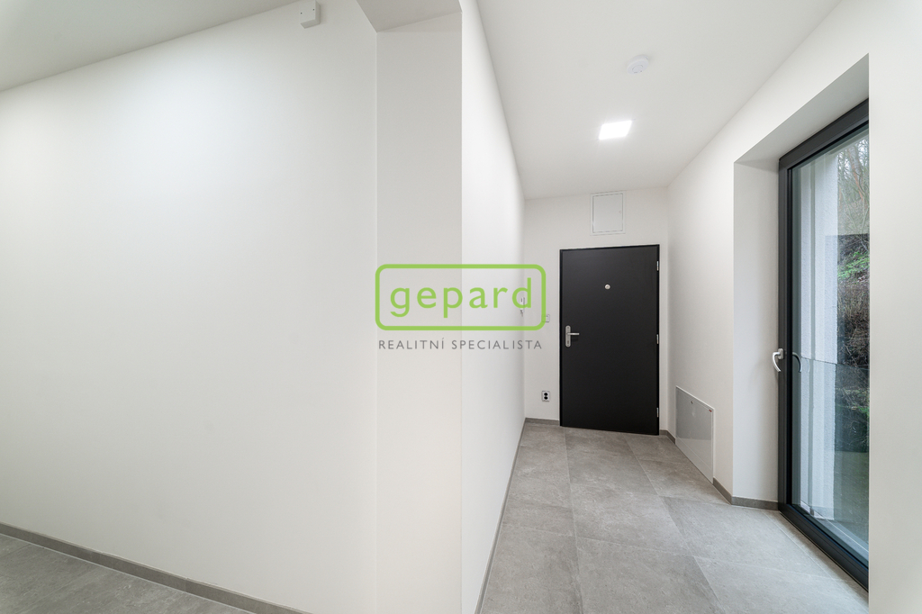 Byt se nachází v 1. nadzemním podlaží a disponuje vstupní halou, odkud se vchází do dalších místností: obývacího pokoje, ložnice a koupelny s WC. Obývací pokoj je orientovaný na jihozápadní stranu a nabízí dech beroucí výhled na řeku a přírodu. V koupelně se nachází místo pro pračku i sušičku, závěsné WC a sprchový kout. Ložnice nabízí celou stěnu pro případné vložení vestavěné skříně pro maximalizaci úložného prostoru.