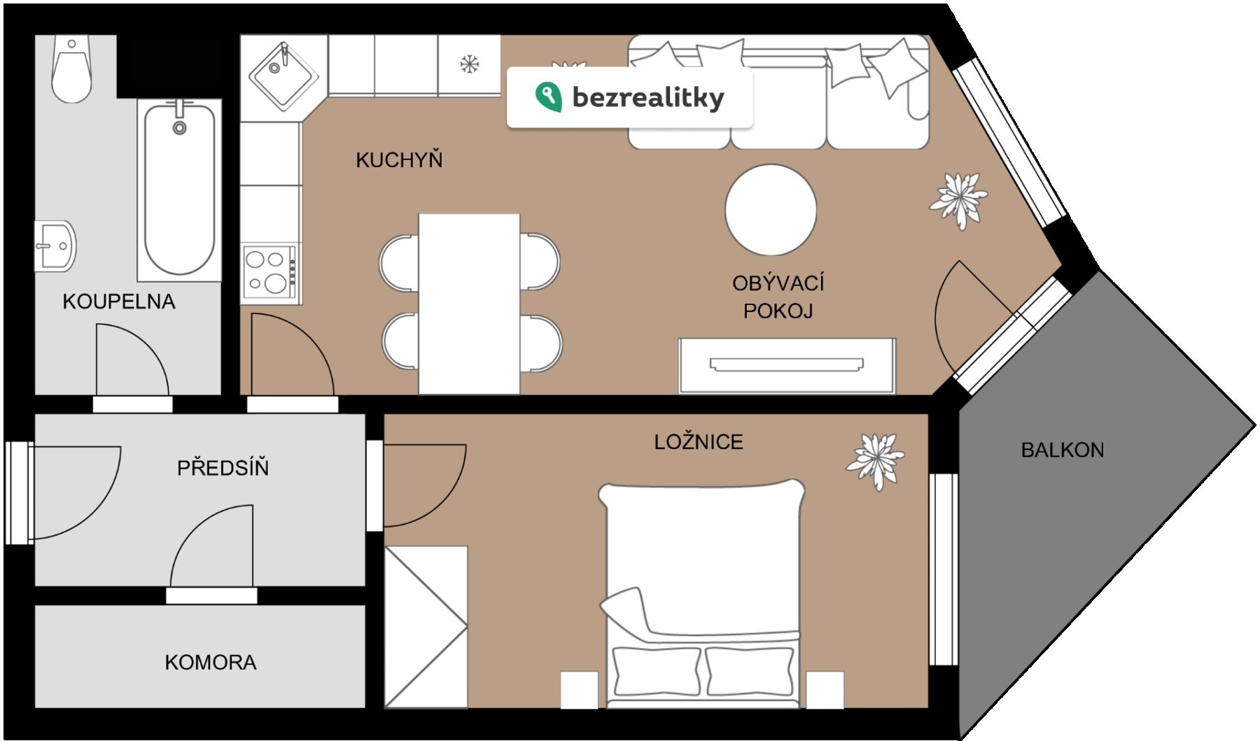 | Dispozice/podlahová plocha: | 2+kk/52 m² |